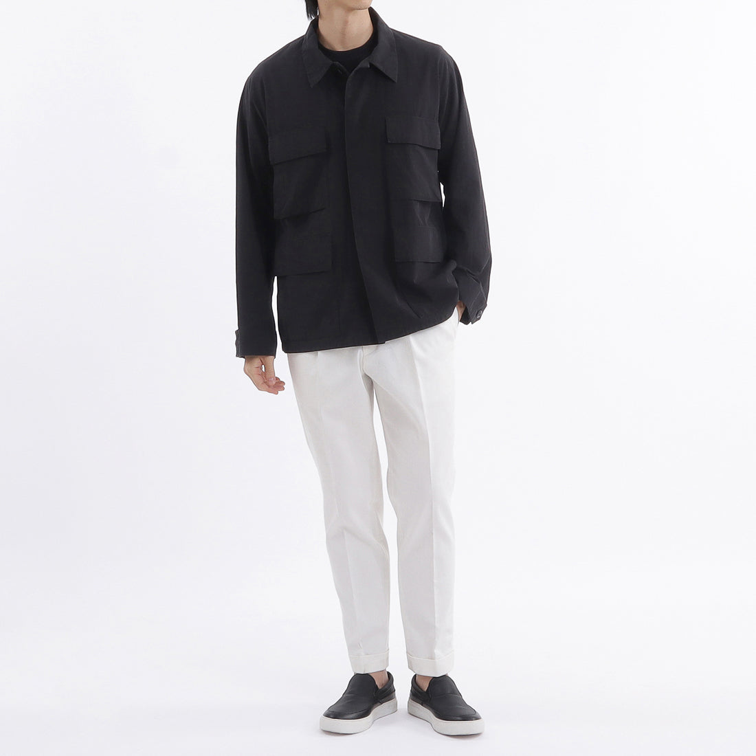 1980年代にUS ARMYに採用され、兵士に着用されていたBDUジャケット。※BDUとはBATTLE DRESS UNIFORMの略。年代は初期、中期、後期に分けることができ、クロスクローゼットでは後期型をベースに現代的にアップデートしています。袖は太くなりすぎず、細くなりすぎないように調整し、エルボーパッチなどのディテールは省いていますが、左胸のポケット内部にはペンホルダーを付けるなど、オリジナルのディテールを踏襲しています。
