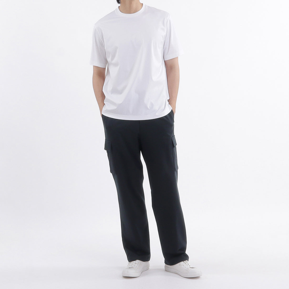 シーズンを問わずに活躍する希少超長綿を使った人気素材「スビンプラチナムスムーステリー」コレクションに新たな商品が加わりました。現代的にアップデートした大人のためのワイドカーゴパンツの登場です。