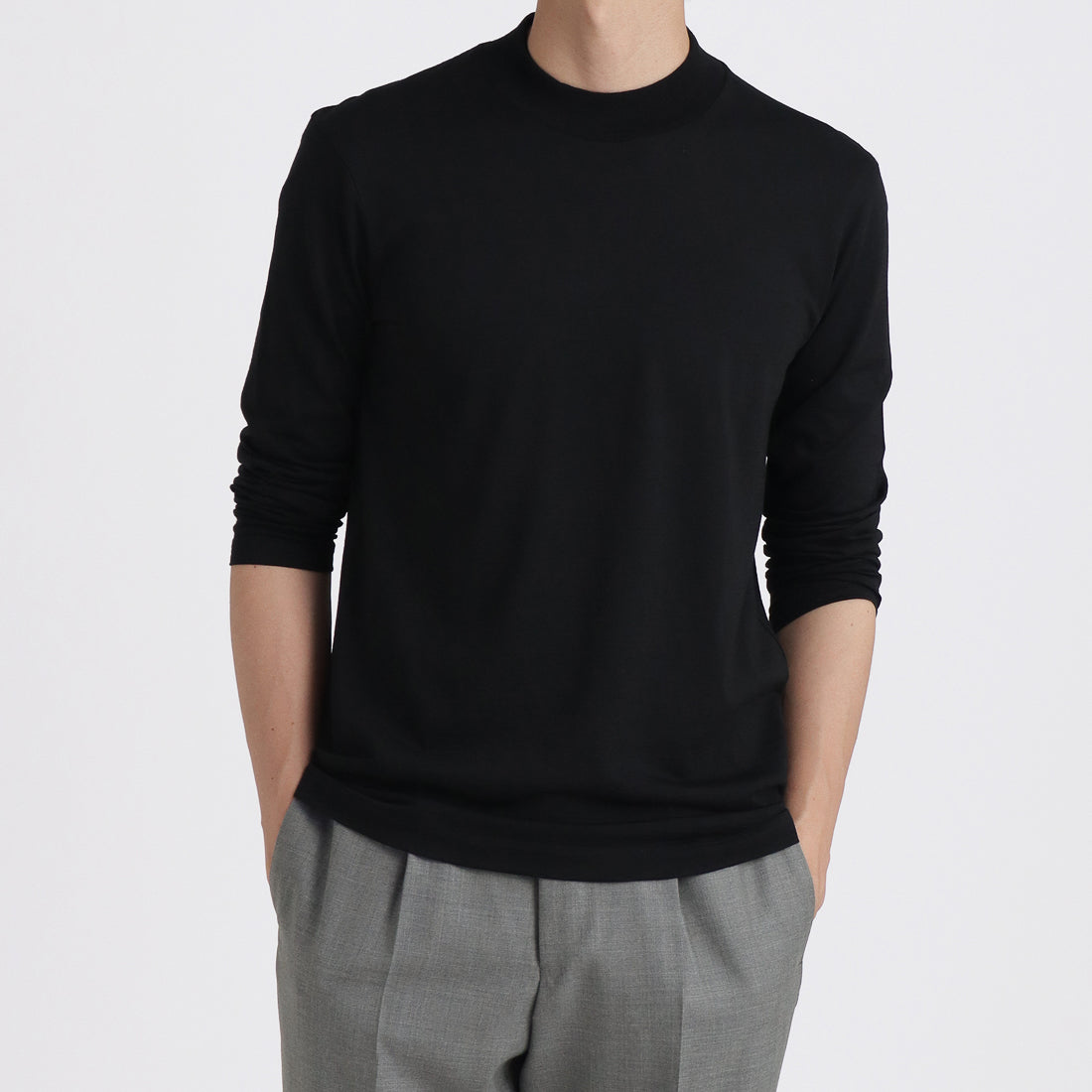 Wool Tailored Mock Neck Long Sleeve T-shirt