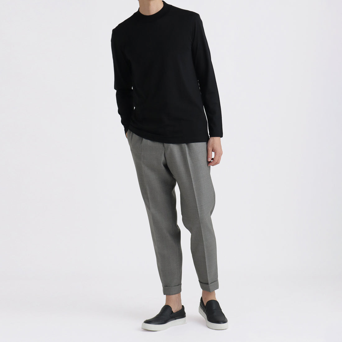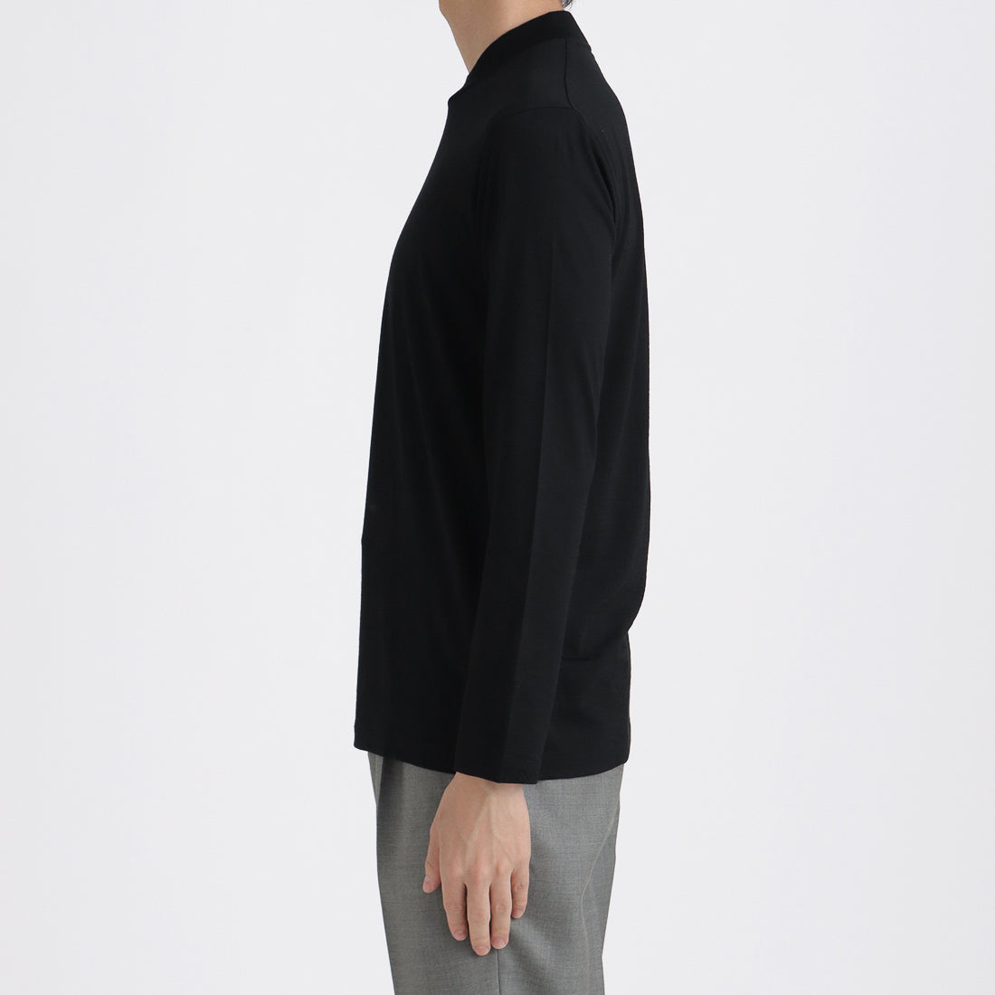 イタリアREDA社のウール天竺を使用したモックネックロングスリーブTシャツ。スーパー120'sのウールを使用しており非常に上品な仕上がりになっております。