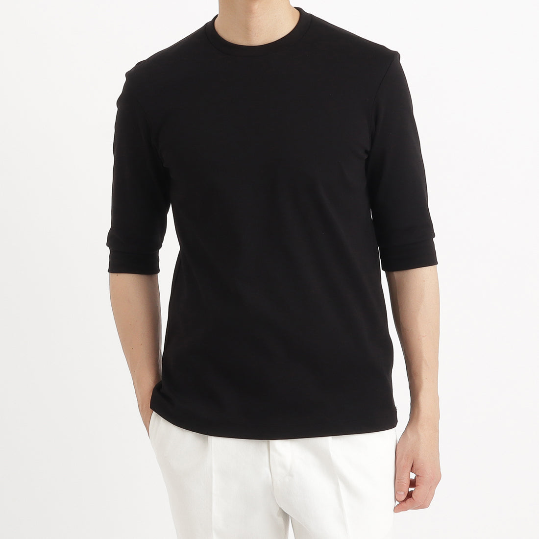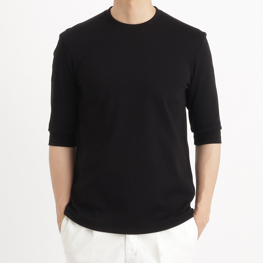 かつて限定生産で登場、瞬く間に完売したハーフスリーブが、スビンプラチナムシリーズに新たにラインナップされることになりました。ドレスライクで品のある雰囲気ながら、袖を捲り上げた時のようなこなれ感を演出することができる1枚です。