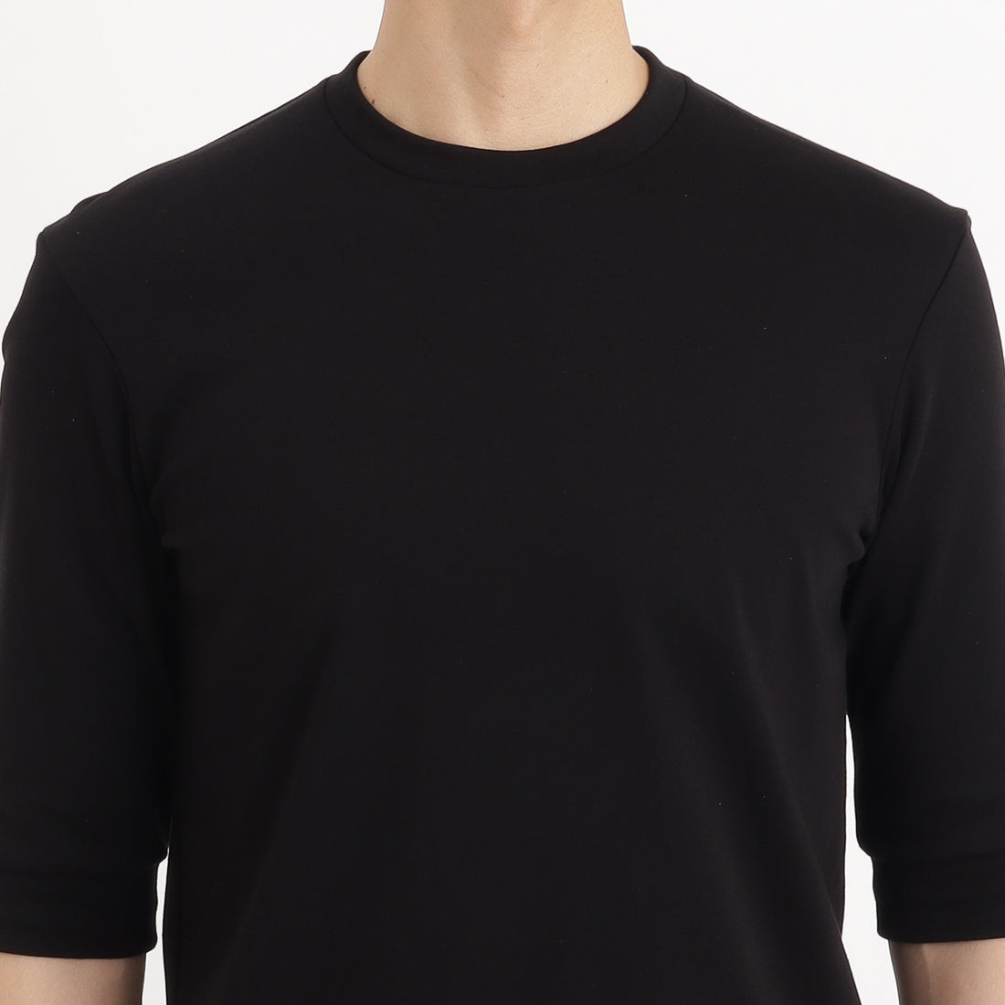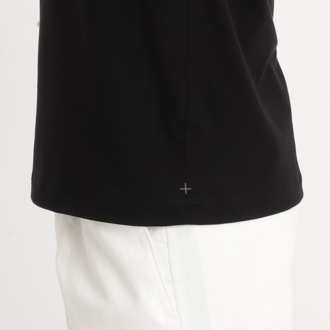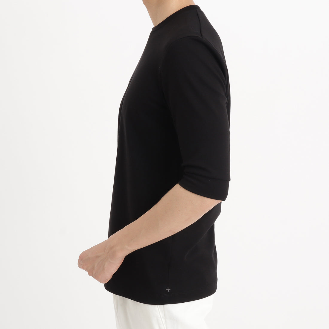 袖は長くしながらも袖自体は細くしたことで、カジュアルな雰囲気が抑えられています。またハーフスリーブ丈は袖をまくった時のような、こなれ感を演出することができます。定番のTシャツと同様に、襟の強度を高めたことで、着用や洗濯でもよれにくくなっています。身頃やアームホールの調整を行ったことで、今まで以上に可動域が広がり、腕が動かしやすくなっています。左脇には+CLOTHETであることを示す+マークが配色で入っています。