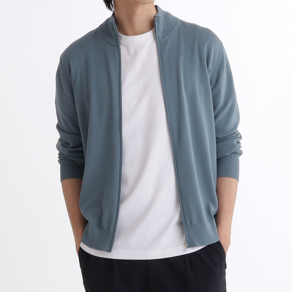 ジップアップニット新色スレートブルーについて詳しくご説明しております。 商品解説を見る