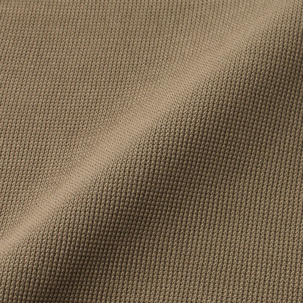カジュアルな印象が強いサーマルもニットで成形、裾口や袖口のリブを細く、さらにひとつひとつの目を細かくすることで上品で大人な雰囲気に仕立てています。