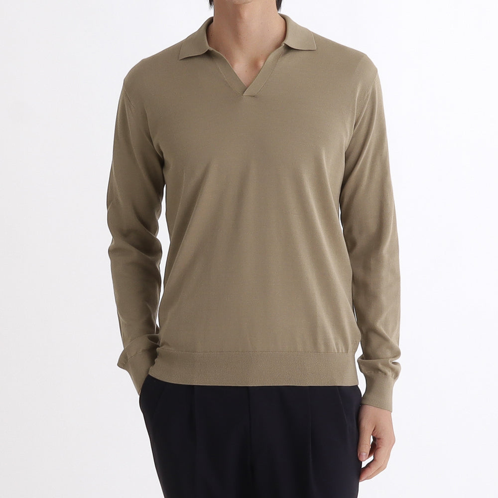 ブランドを代表する希少な超長綿スビンプラチナム(ファーストピック)を使ったスビンプラチナムニットコレクション。上品な襟の開き具合が人気の半袖スキッパーに、新たに長袖タイプが加わりました。スビンプラチナムならではの編み目の綺麗さや肌触りは上品かつ大人な雰囲気を演出。原料の良さを活かしたシンプルながらも存在感のあるルックスは男性女性問わずに着用いただける大人のデイリーウェアとしておすすめです。