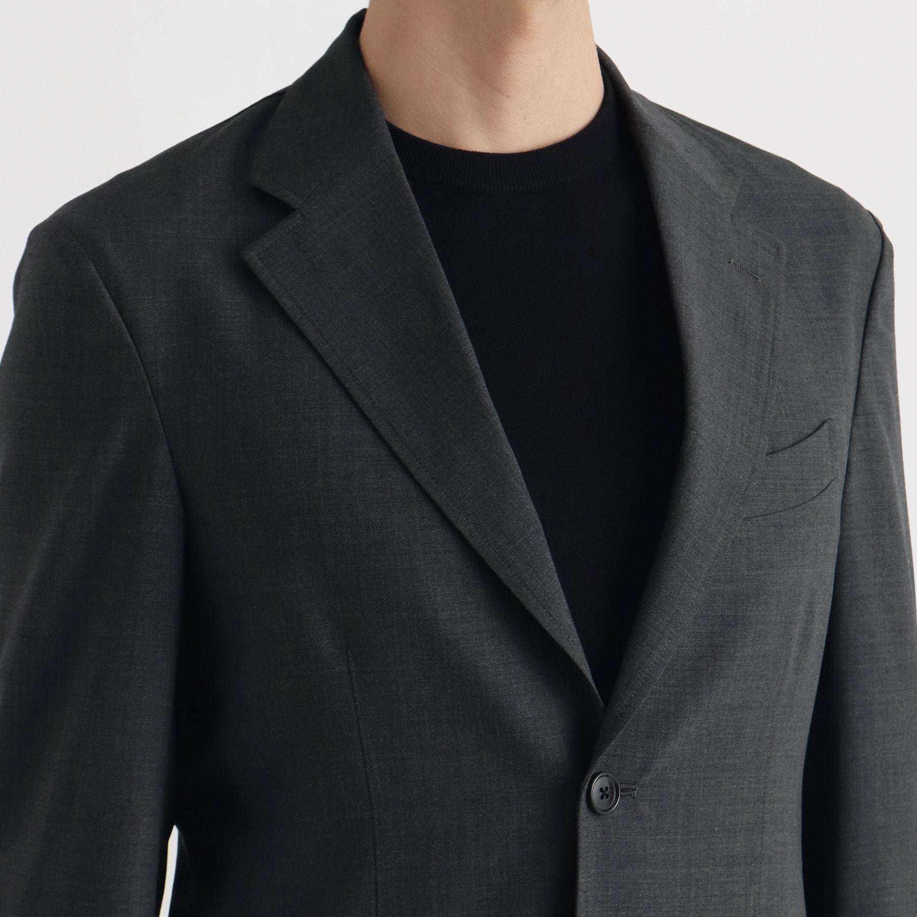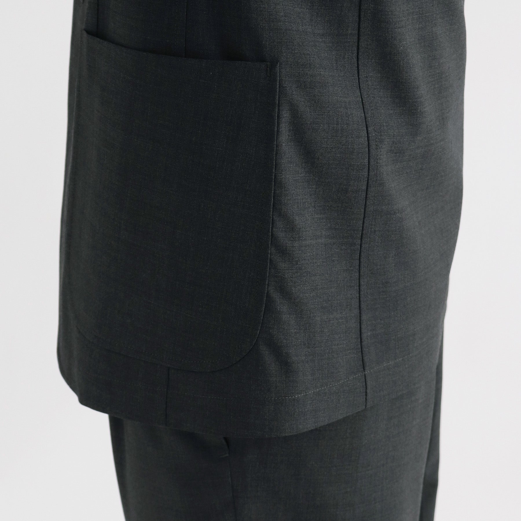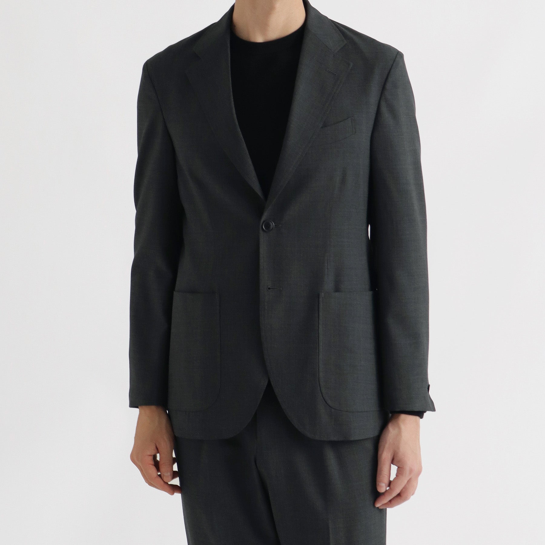 幅広のラペルや狭めのVゾーンなどクラシカルな表情や前身頃を少し外側に逃がすテクニックは健在。シャツと同じ縫い目仕様(折り伏せ縫い)にすることでカジュアルな雰囲気に仕上げています。ウールならではの吸放湿性もあるので夏でも快適にお召しいただけます。 カットソーやニットなどのカジュアルなアイテムとのスタイリングはもちろん、シャツとの相性とも非常に良い万能な一着。
