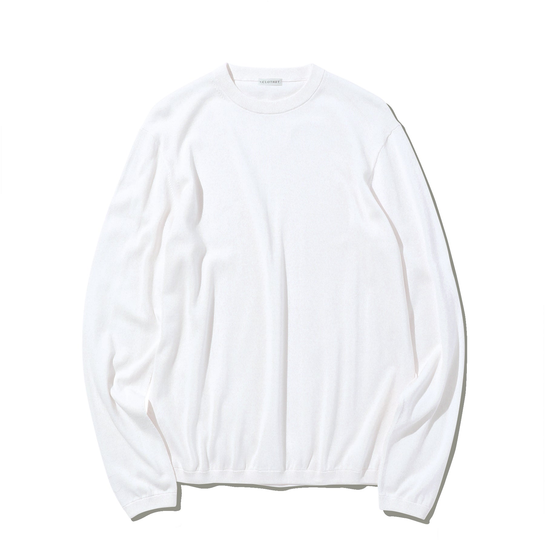 ブランドを代表する素材スビンプラチナム(ファーストピック)を使ったスビンプラチナムニットコレクション。その中でもシーズンを問わず着用いただけると人気の長袖クルーネックの登場です。