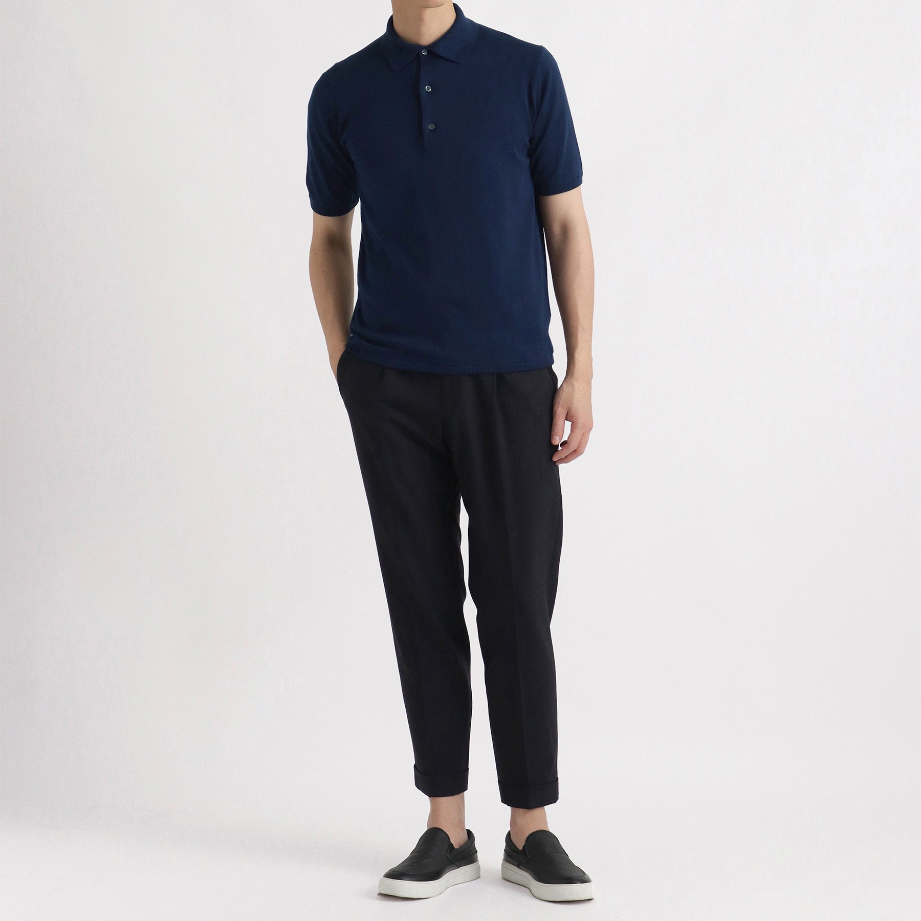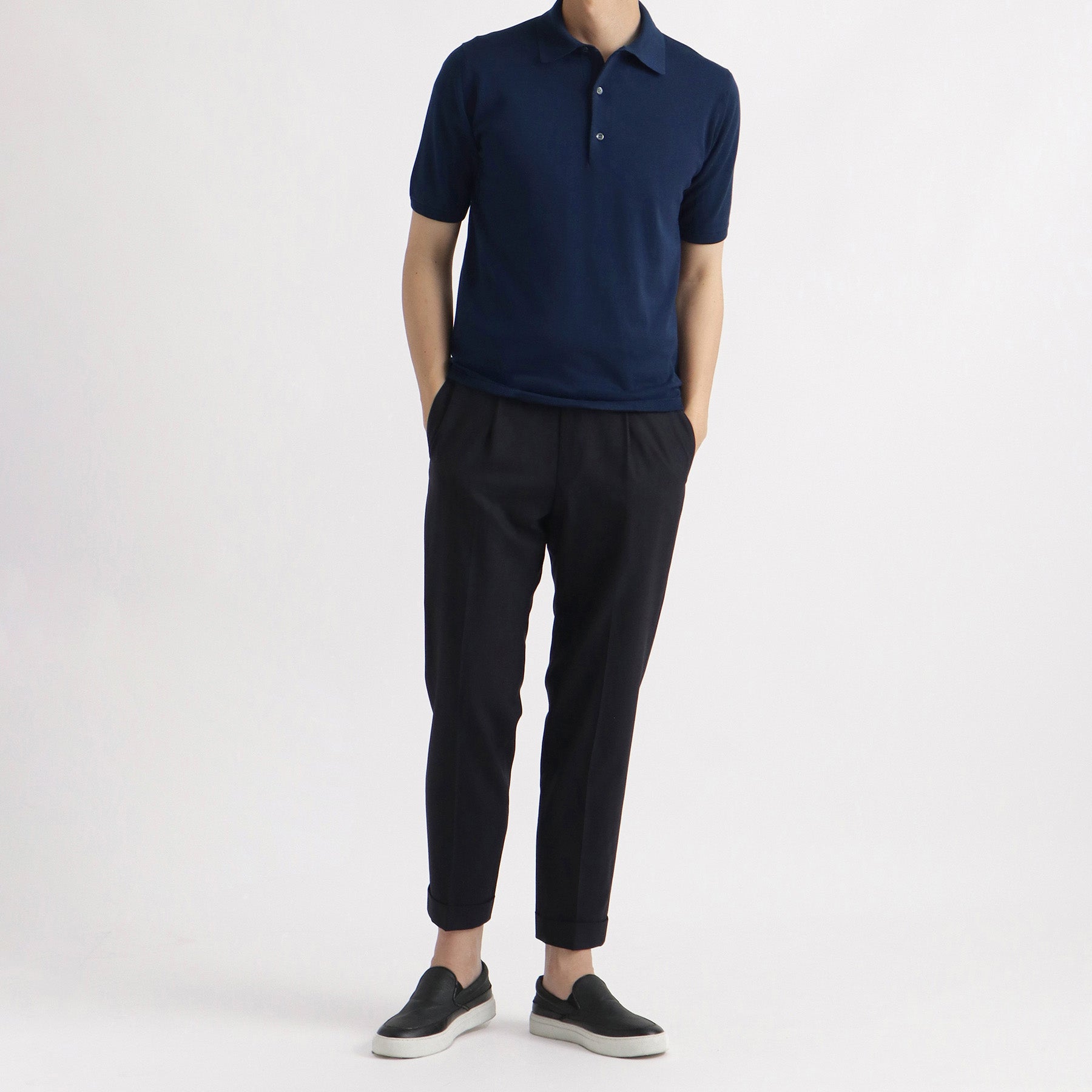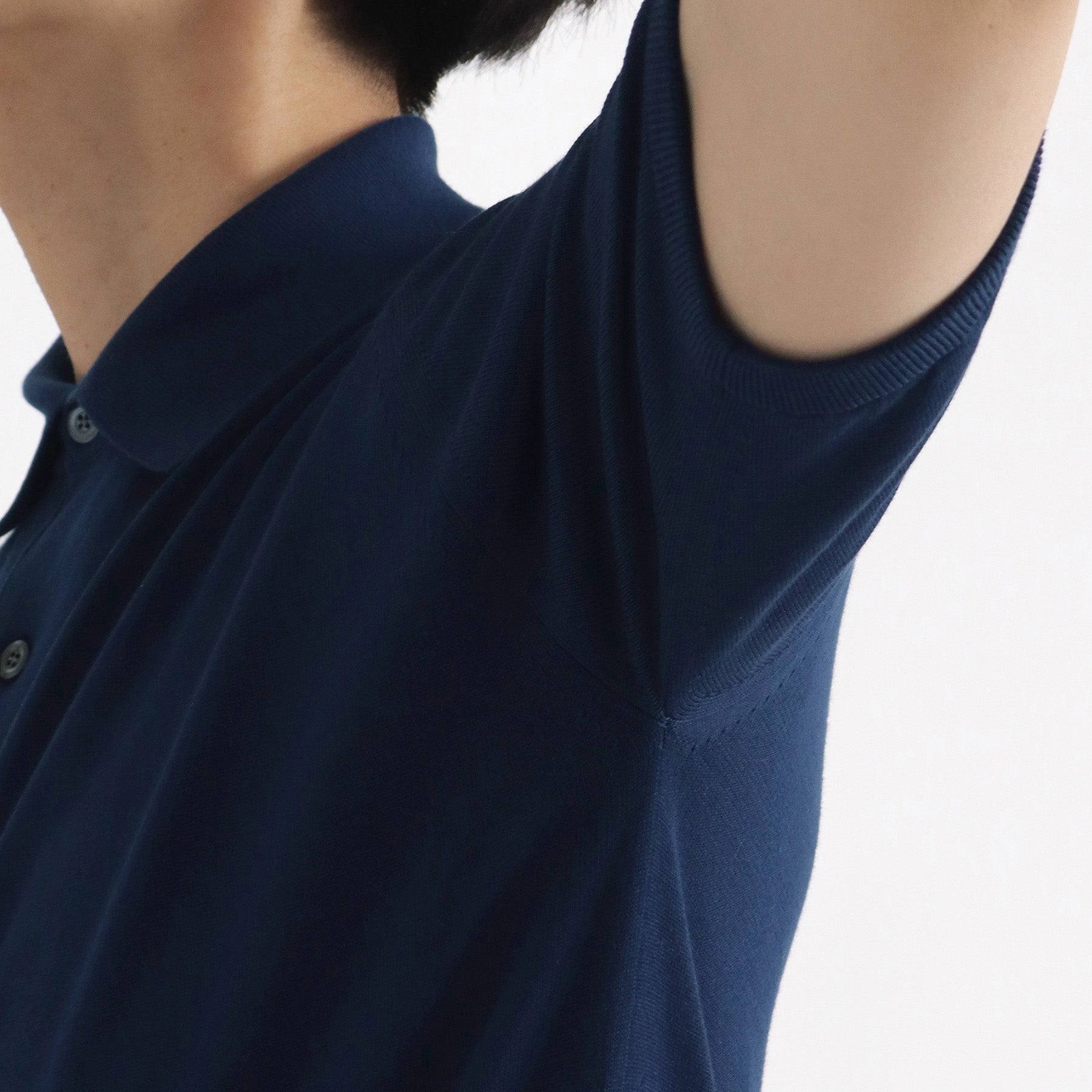 テーラー監修のポロシャツの型紙をベースに作製されたスビンニットポロシャツ。