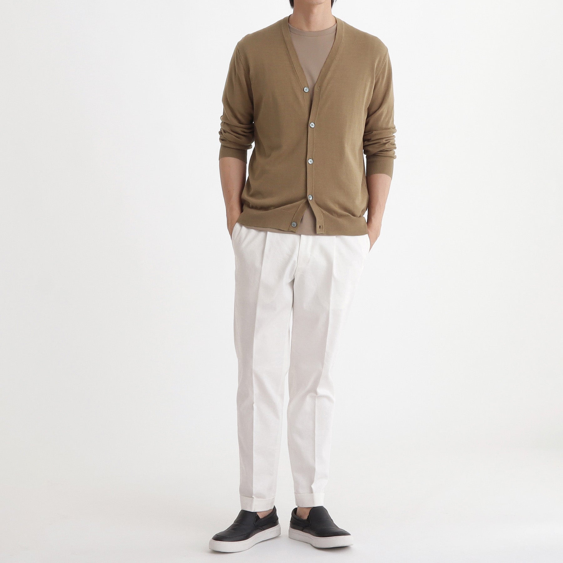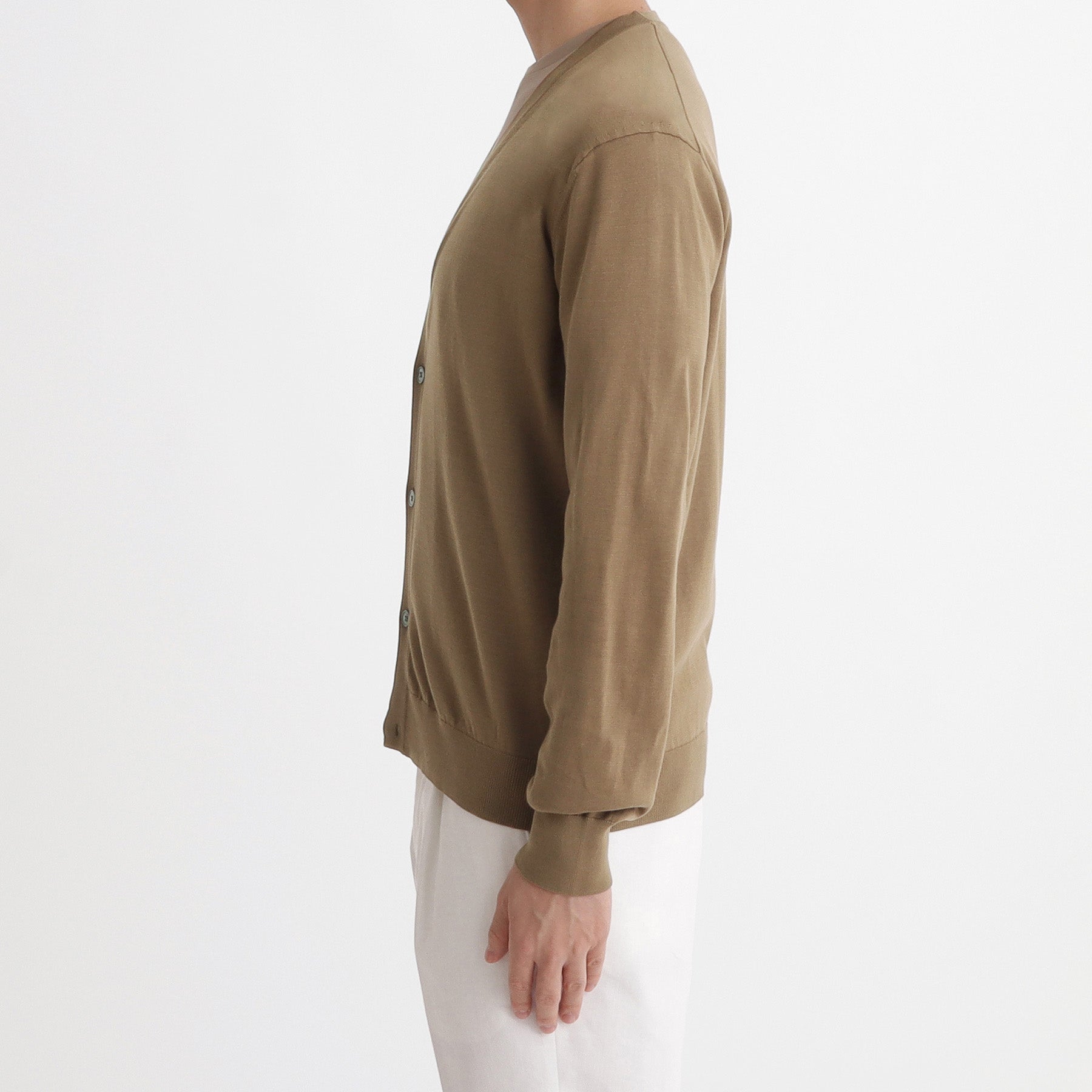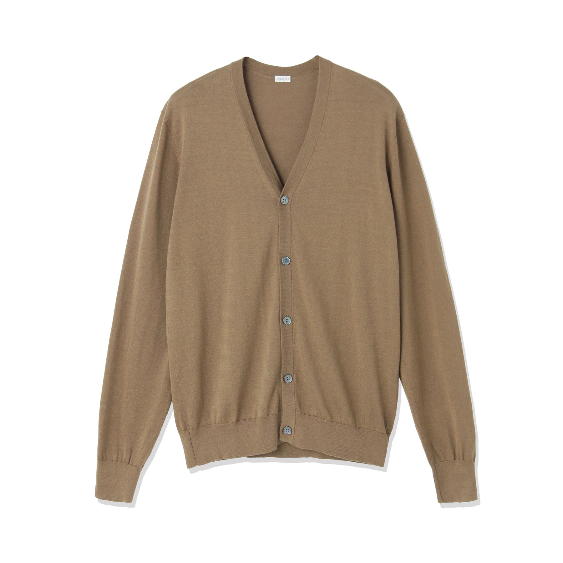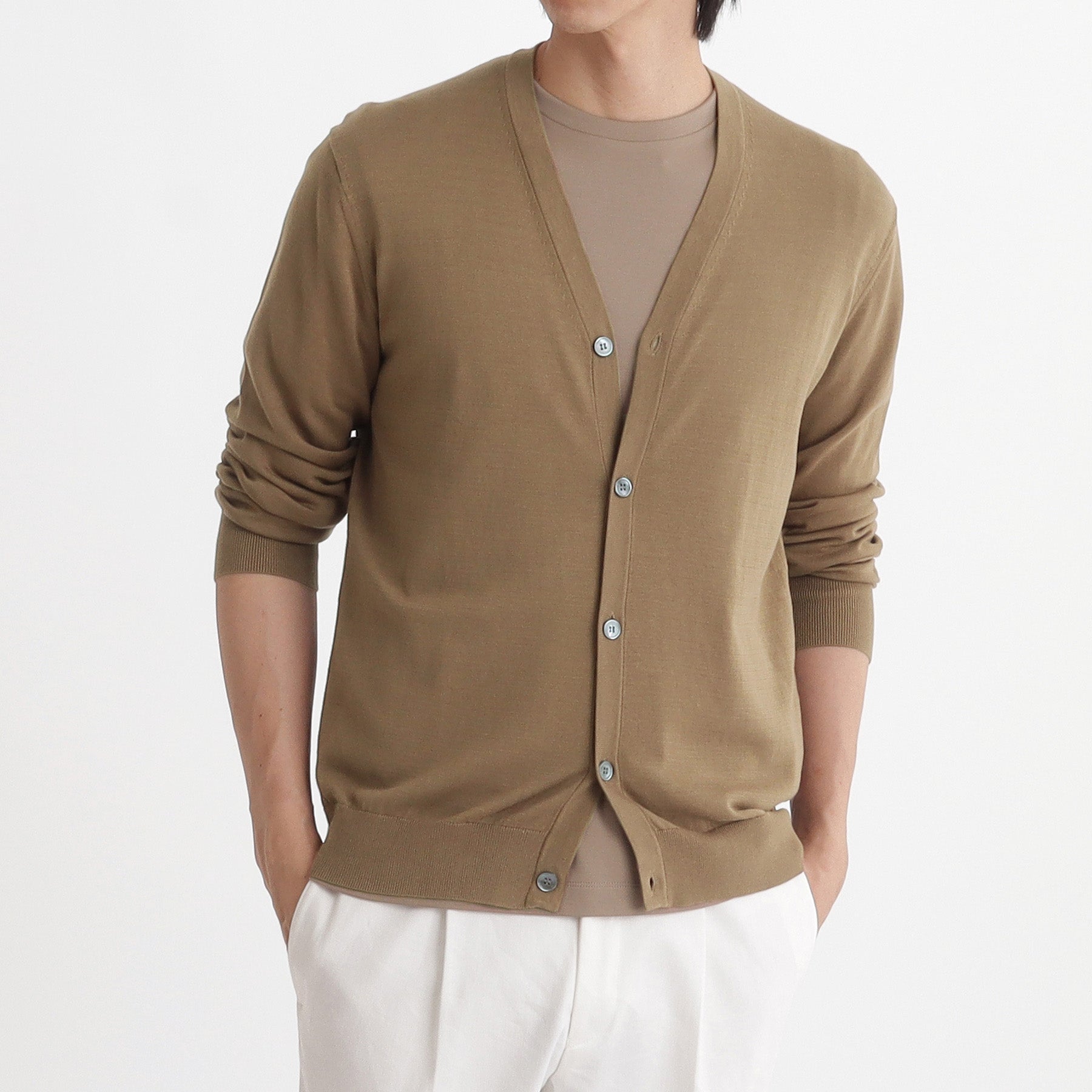 ブランドを代表する素材スビンプラチナム(ファーストピック)を使ったニットカーディガンは人気のレイヤードアイテム。