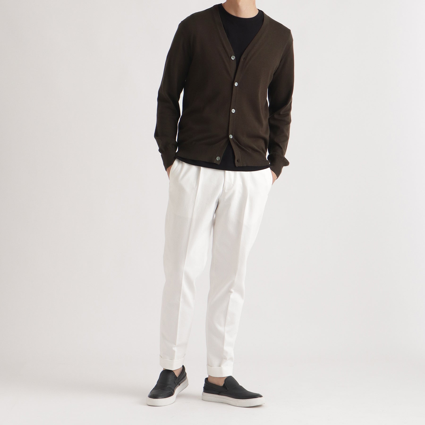 原料の良さを最大限に活かしたベーシックなデザインとシルエットはオンオフ問わずにビジネスなど様々なシーンで活躍するこだわりの一着です。