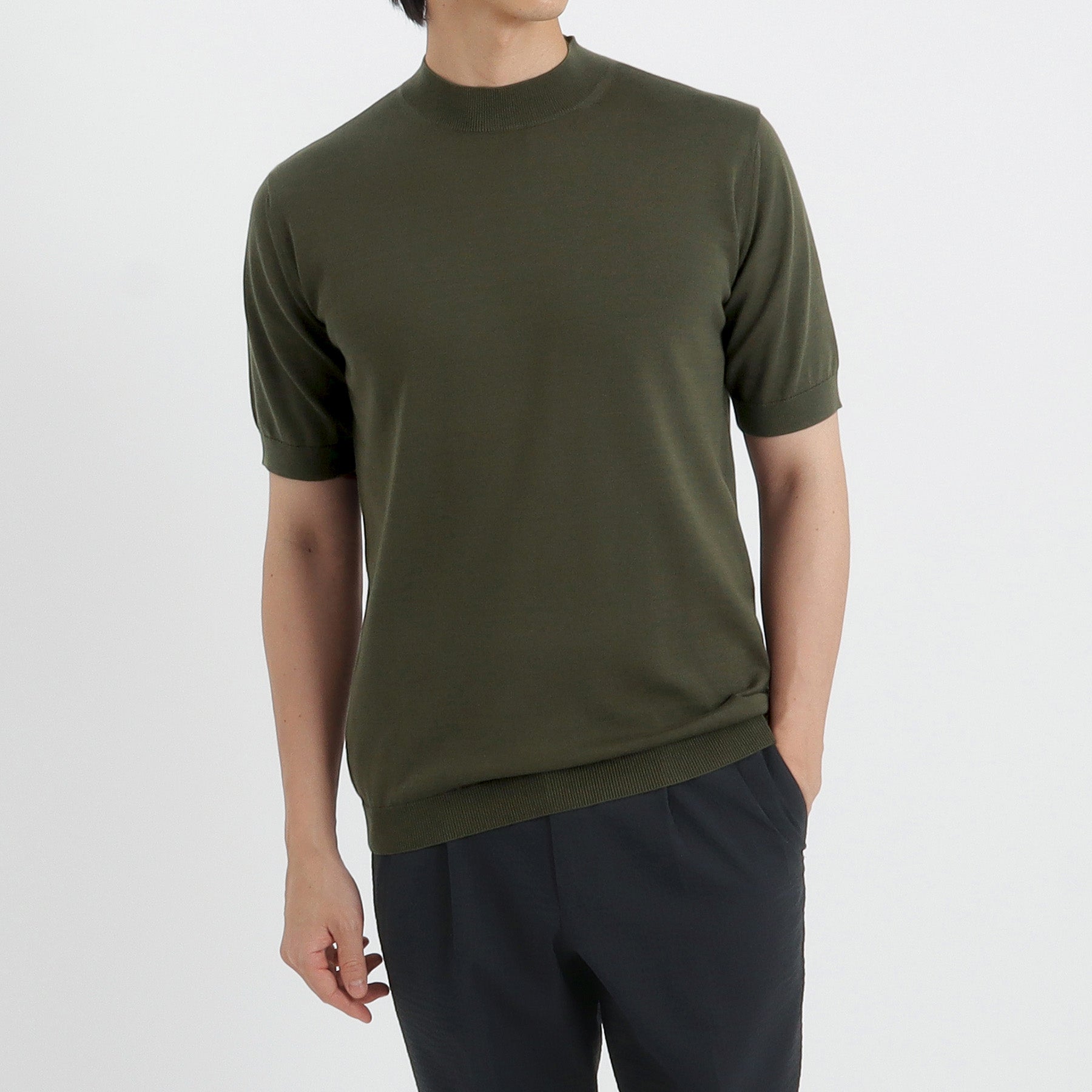 上品で大人な雰囲気を持つ、人気のモックネックニットTシャツに新色が登場しました。最大の特長である首元部分の仕様・デザインにこだわり抜いたモックネックニットは、一枚での着用はもちろん、ジャケットのインナーとしても活躍する一枚です。