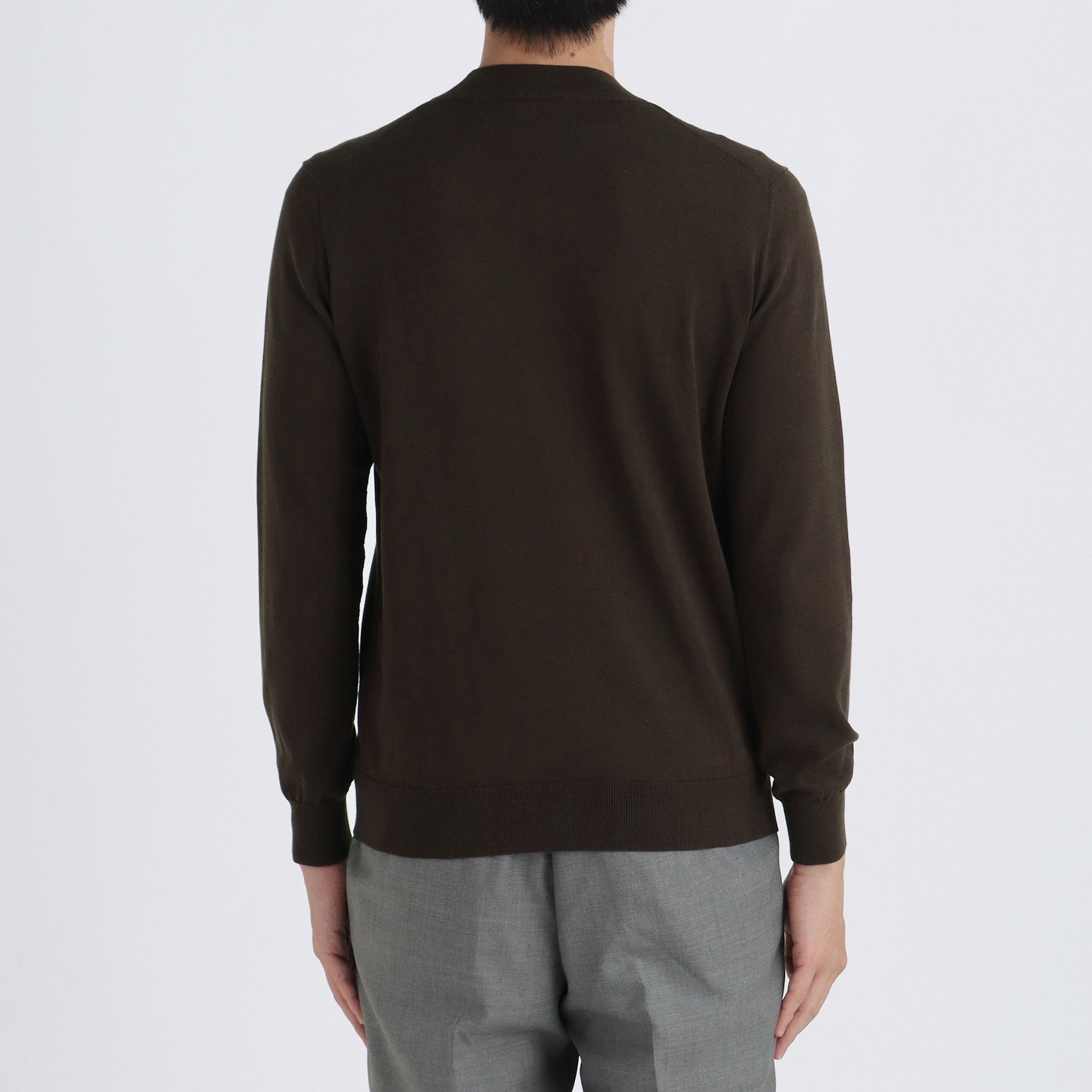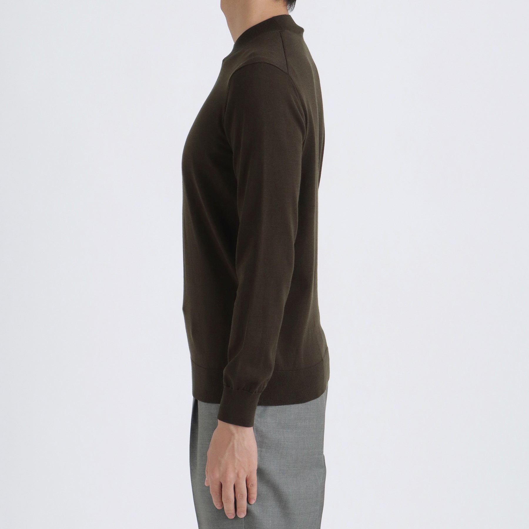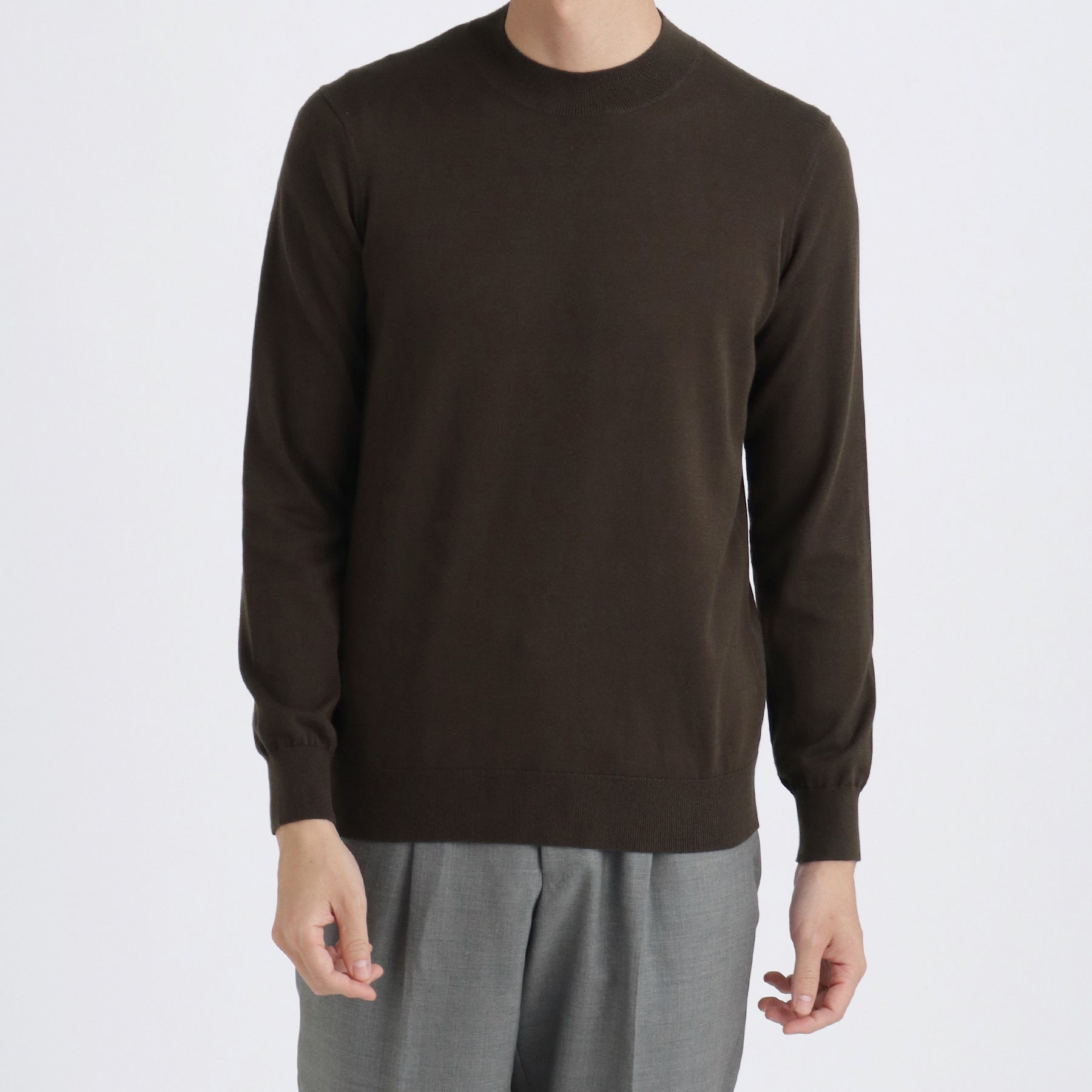 スビンプラチナムニットシリーズの中でも特に人気のモックネックに新色、フォーンとオークが登場です。どんなスタイルにも馴染みながら、さりげないアクセントとなるカラーに仕上がりました。最大の特長である首元部分の仕様・デザインにこだわり抜いた1着はジャケットやブルゾンのインナーに使うことでエレガントな印象にすることができます。