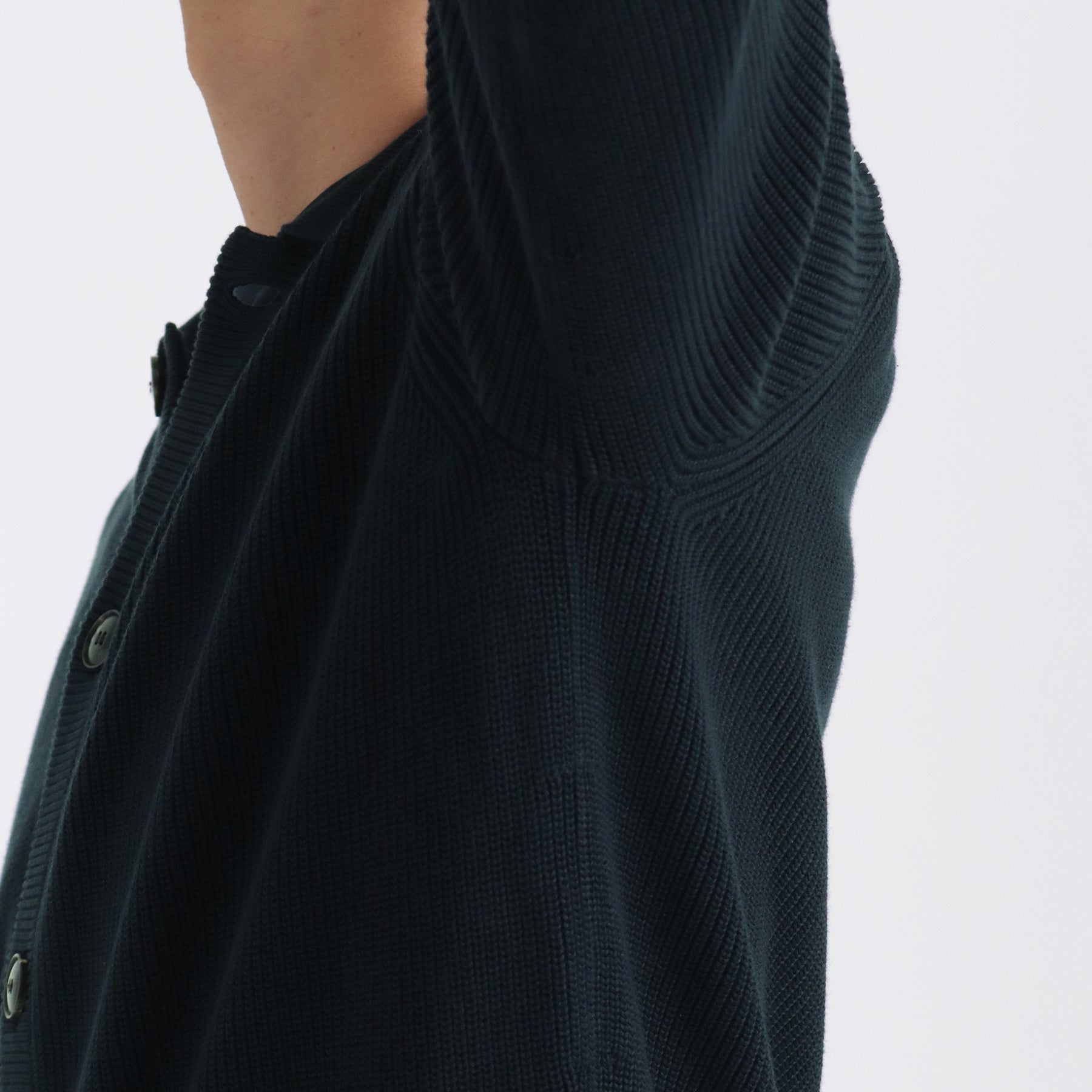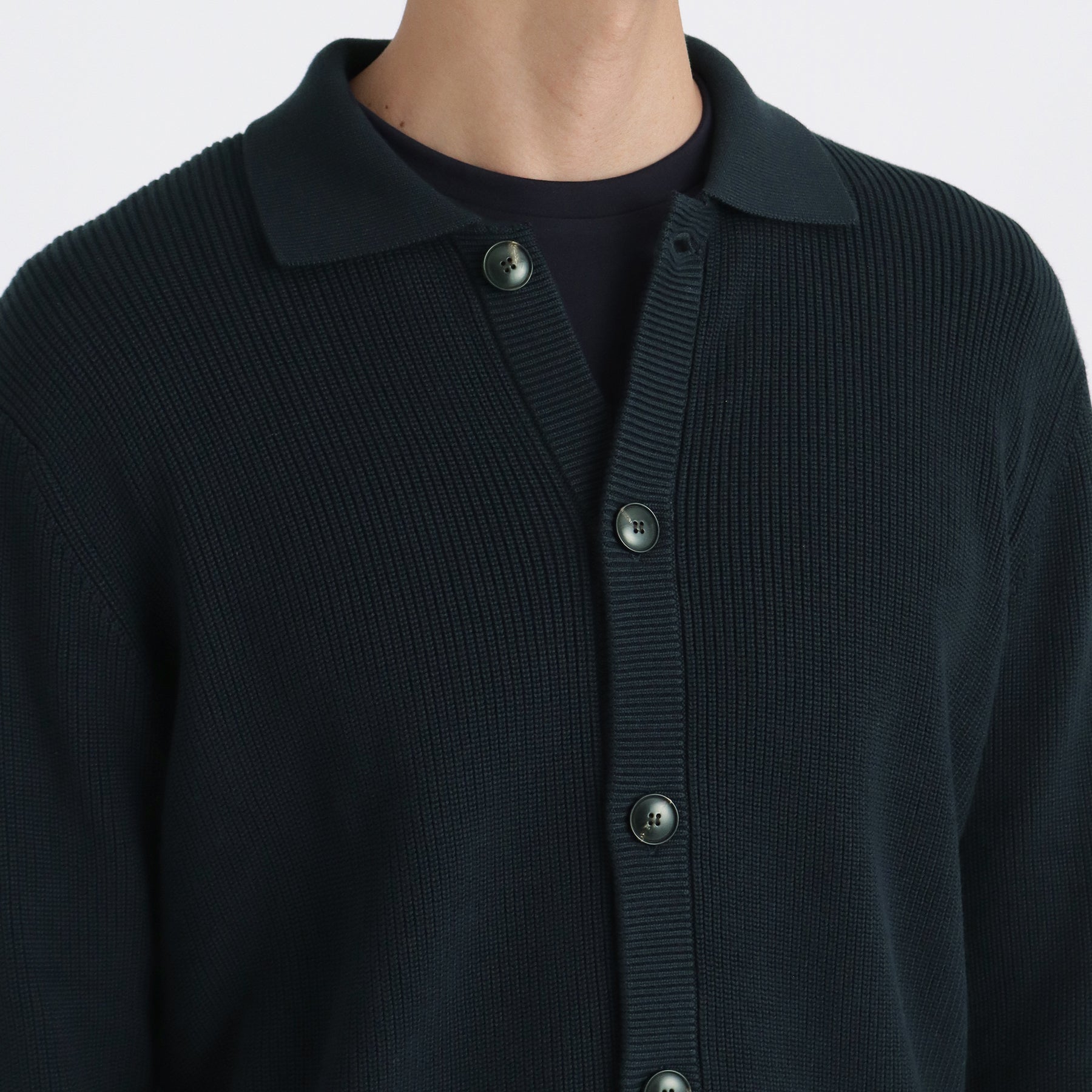 スビンプラチナムを使用したミドルゲージのニットカーディガン。編地は片畦の9ゲージを採用。スビンプラチナムならではの編み目の綺麗さや肌触りでソフトで上品な印象に。 ミドルゲージで重厚な見た目ながらも柔らかな仕上がりのためアウターやブルゾンよりも軽い感覚で着ていただけます。フロントボタンの開け閉めで印象を変えることができ、シンプルなリラックスカジュアルコーディネートが楽しめます。