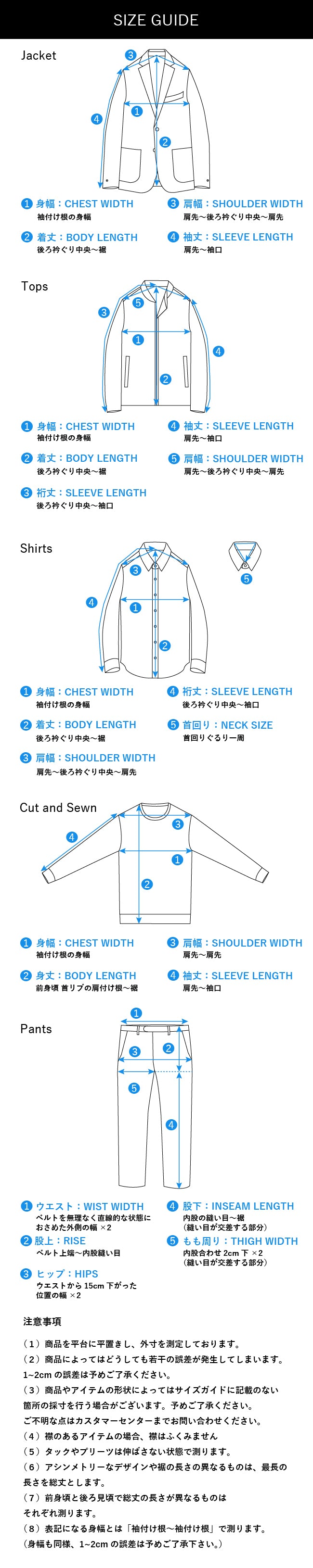 | 袖丈 | 61 | 62 | 63.5 | 65 |