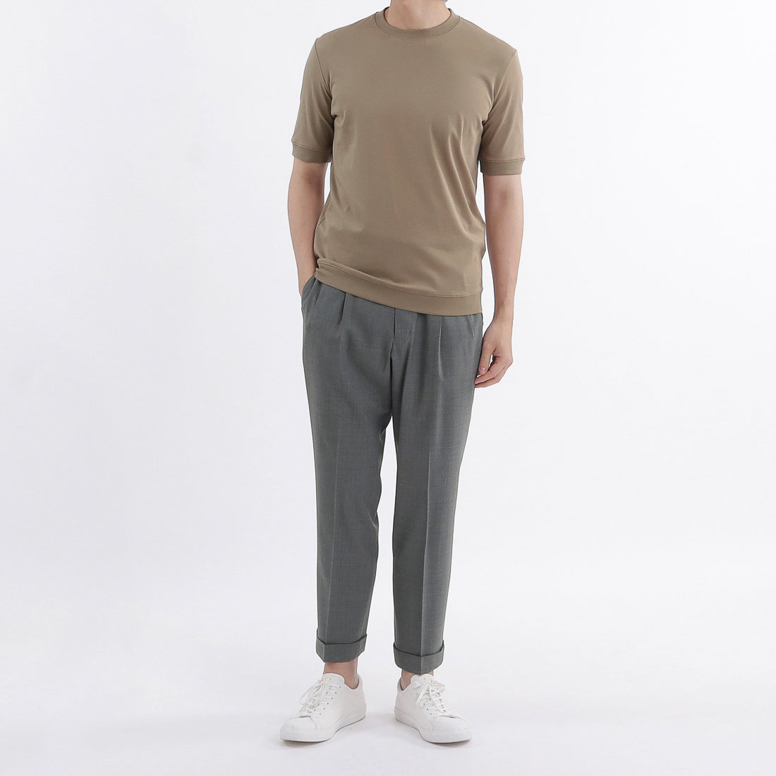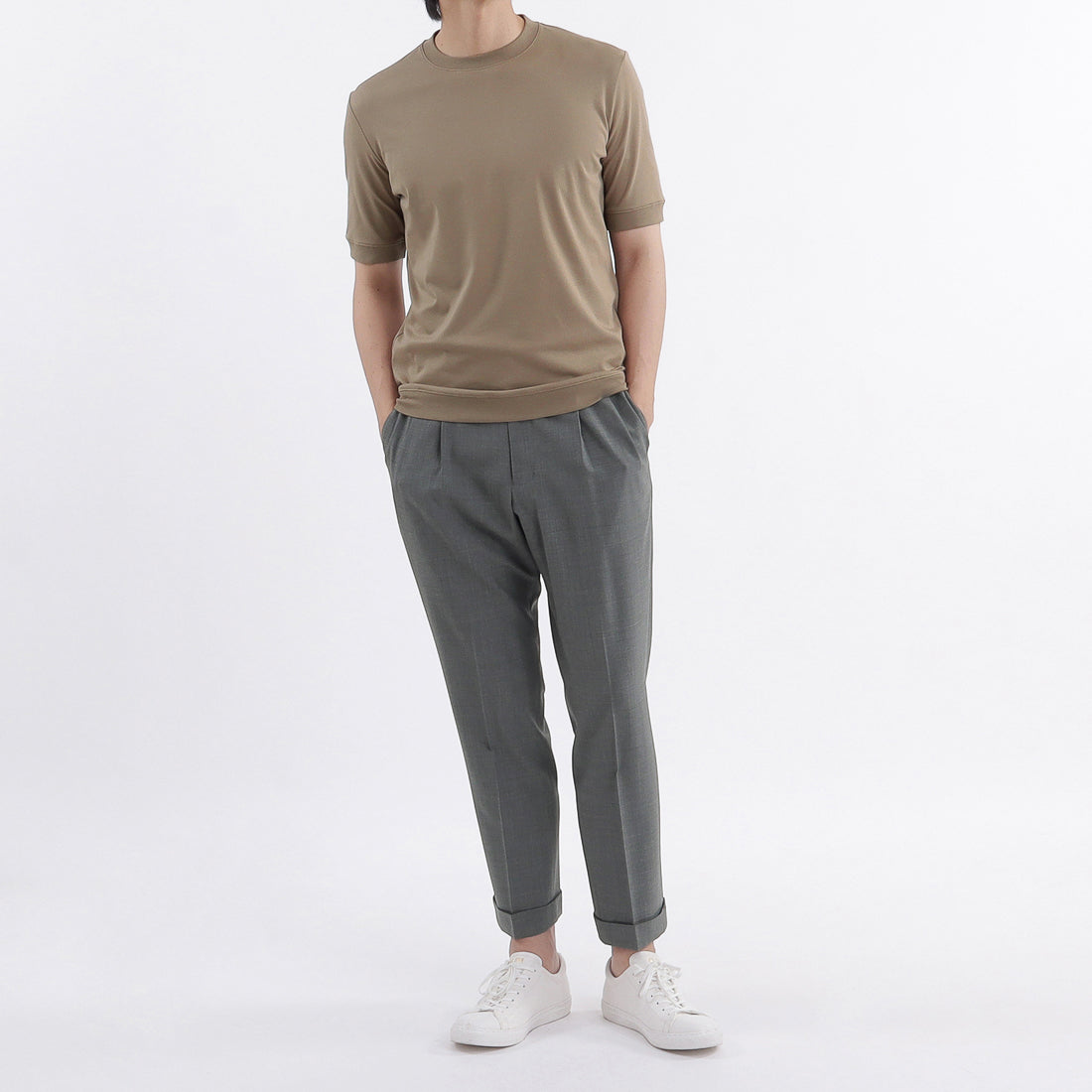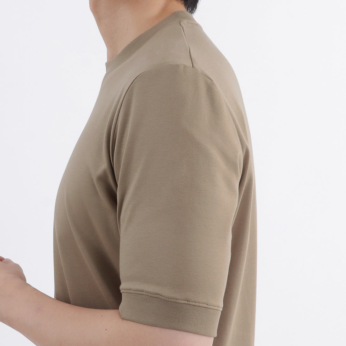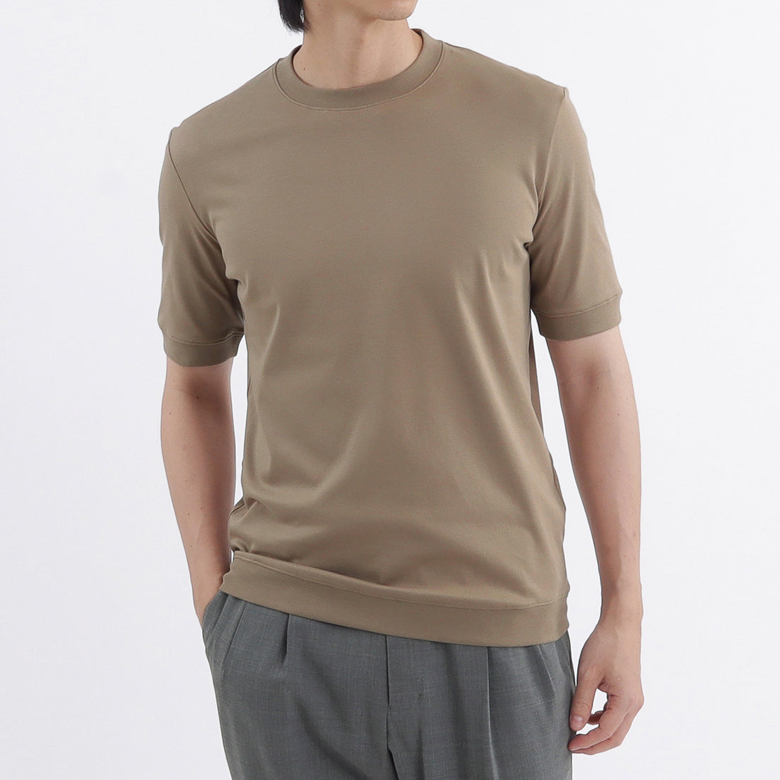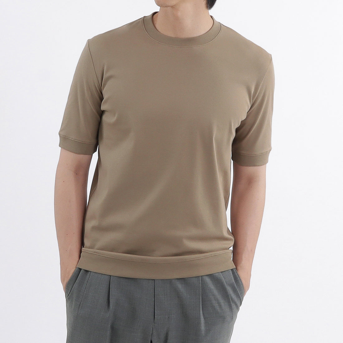 袖口・裾にリブを配置し、Tシャツのイージーさとニットのエレガントさを併せ持った新感覚の「テーラードリブドヘムTシャツ」に新色のベージュ系カラー「ミスト」が登場しました。 新色は秋口にかけても活躍する肌なじみの良い上品なカラーです。