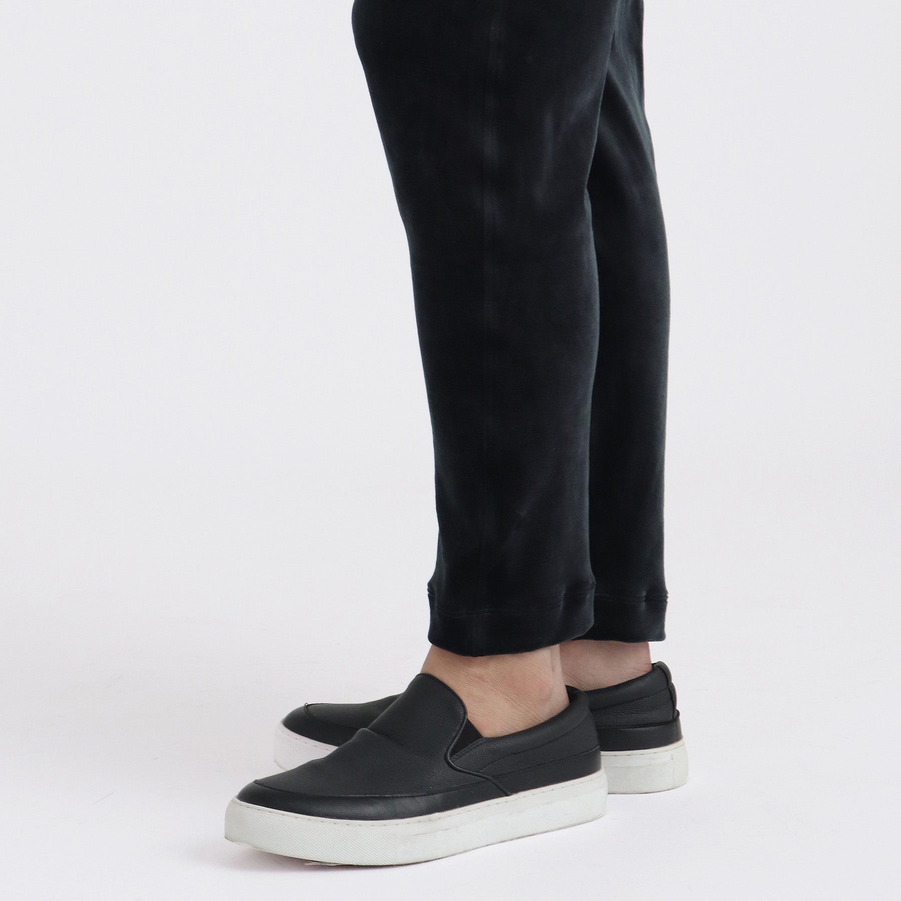 スビンプラチナムシリーズの新素材ベロアを使ったスウェットパンツです。滑らかで光沢感のあるベロアに最高峰と称されるスビンプラチナム原料を使用することで、より一層高級感のある艶やかな素材が完成しました。ドレス仕立てのトラウザーパターンを基にスウェットパンツを仕立てているため、動きやすさとシルエットの美しさを両立させています。