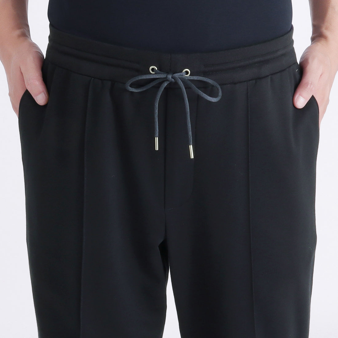 ドレス仕立てのトラウザーパターンを基に仕立てているため、動きやすさとシルエットの美しさを両立させています。前モデルと比べてヒップを少し広くすることでゆとりは持たせながらもスッキリとした見た目にリニューアルしました。またウエストベルトの幅を広くしてウエストのフィット感を高めています。フロントにピンタック(センタークリースのステッチ加工)を入れることでカジュアルな素材ながらもドレス要素を取り入れています。