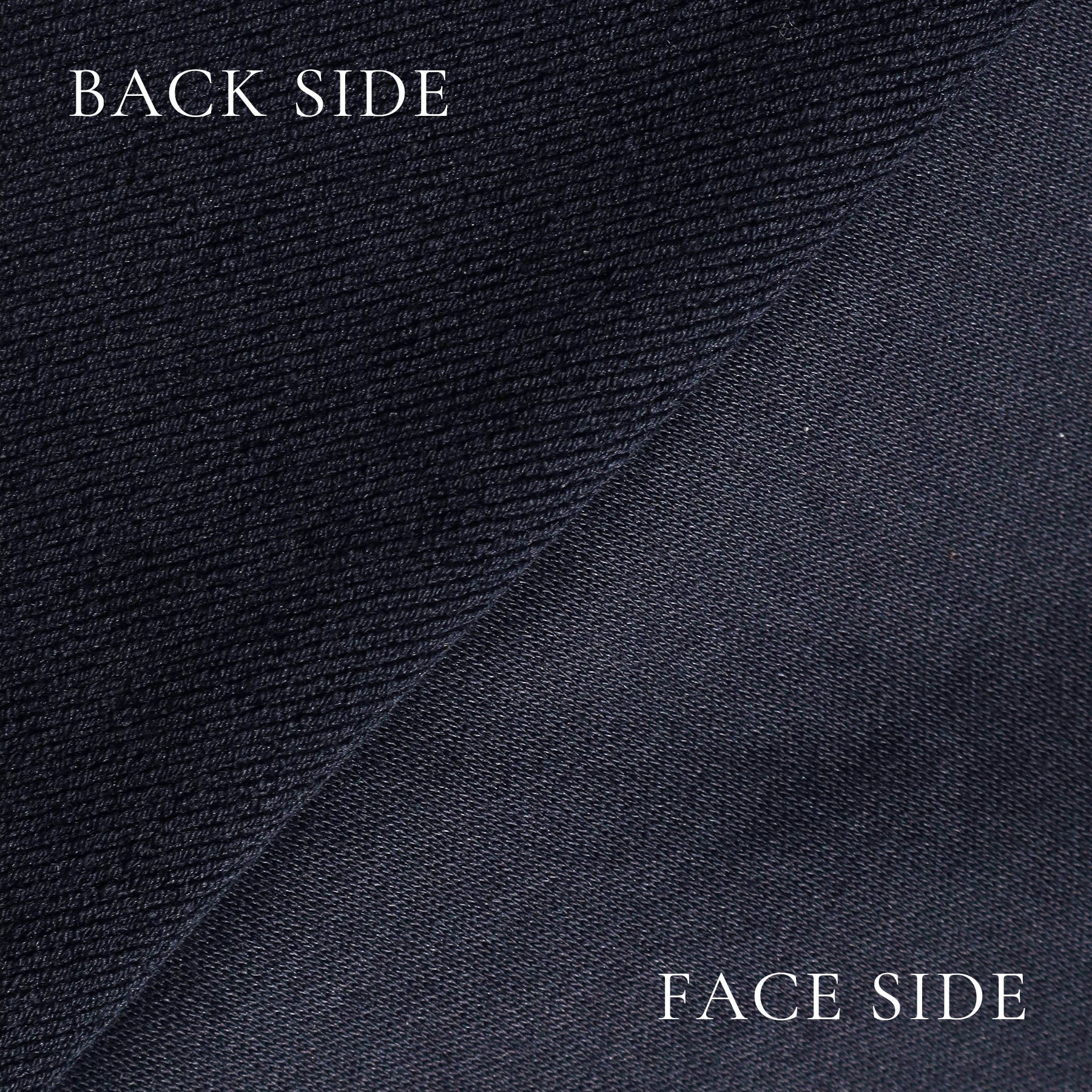 希少原料スビンプラチナムを使ってインレー編みと言われる特殊な編み方で作られています。表面はスビンプラチナム特有のなめらかさを見せながら、裏面は裏毛のようなループを持っており、なめらかで且つハリコシも有るという相反する表情を持った生地が完成しました。