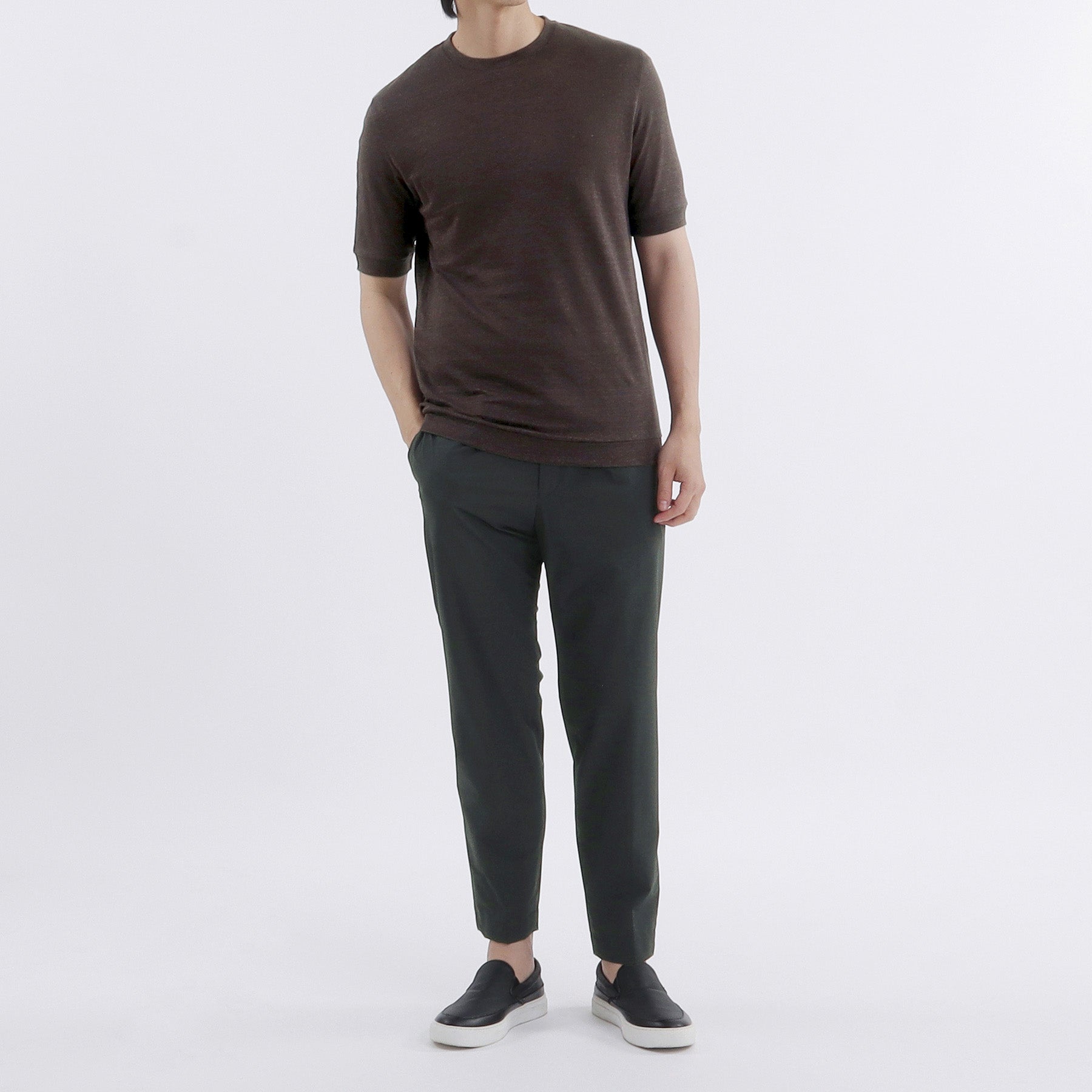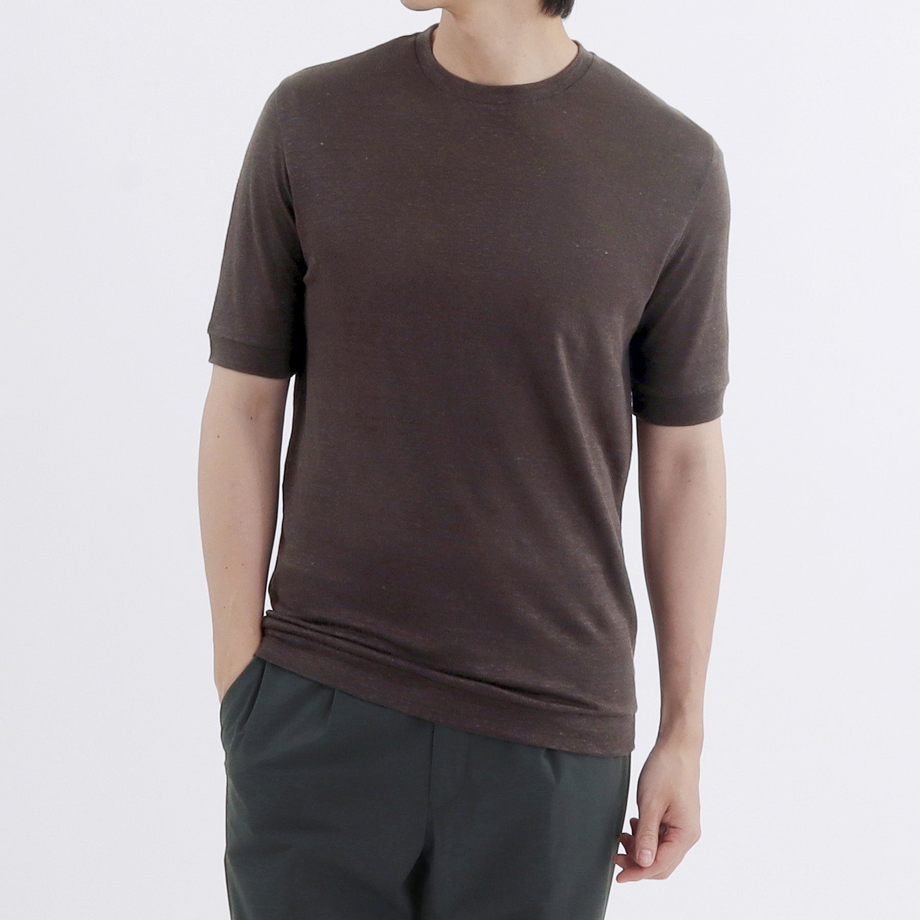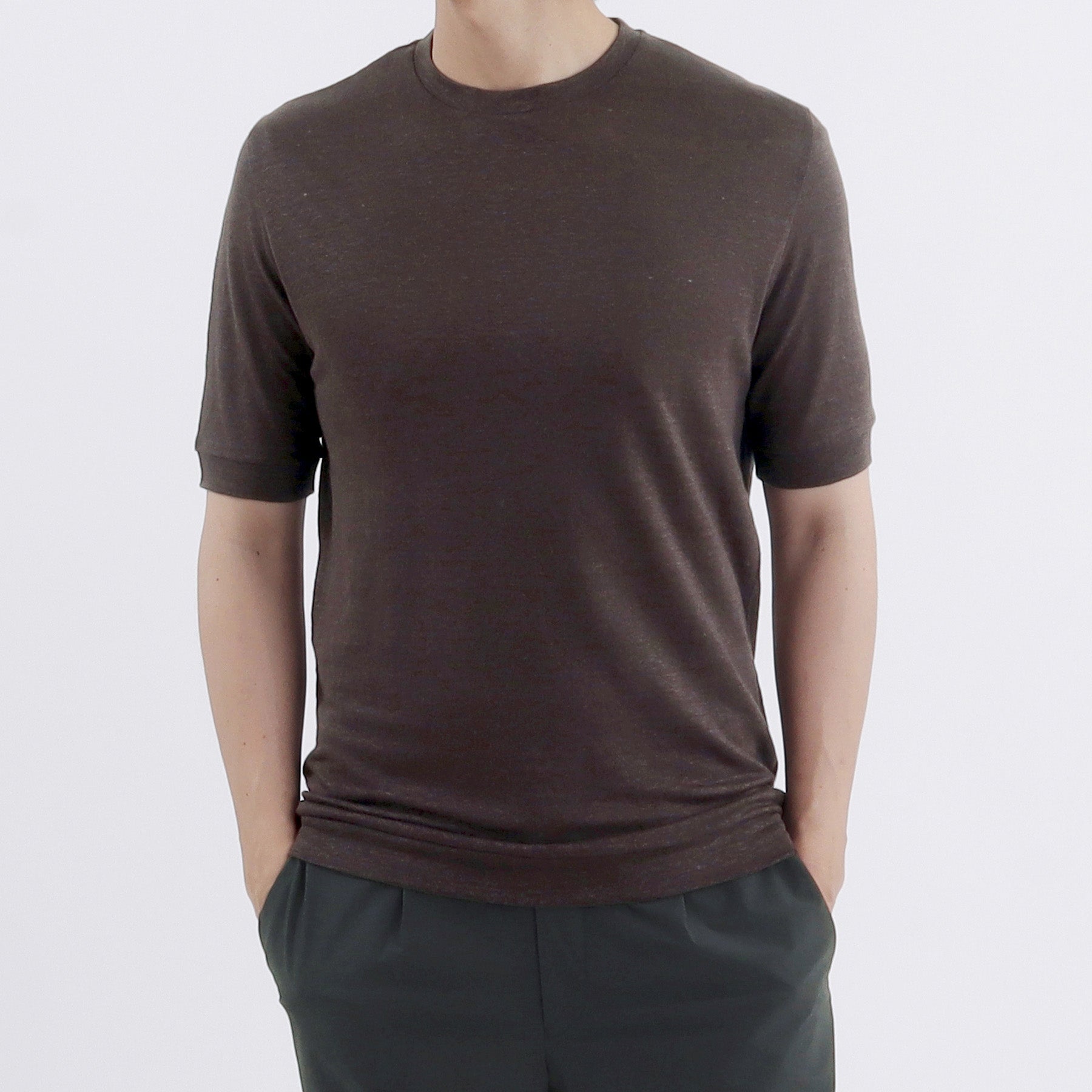 Linen Jersey Tailored Ribbed Hem T-shirt