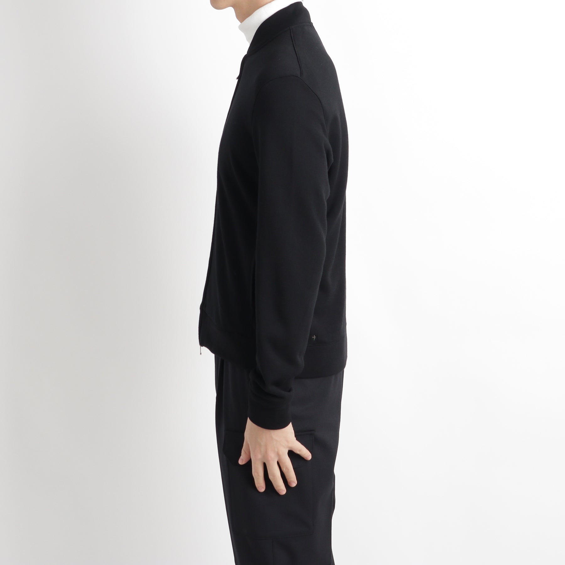 左後脇付近には+CLOTHETであることを示す+マークが配色で入っています。モックネックやタートルネックとのコーディネートが特におすすめです。