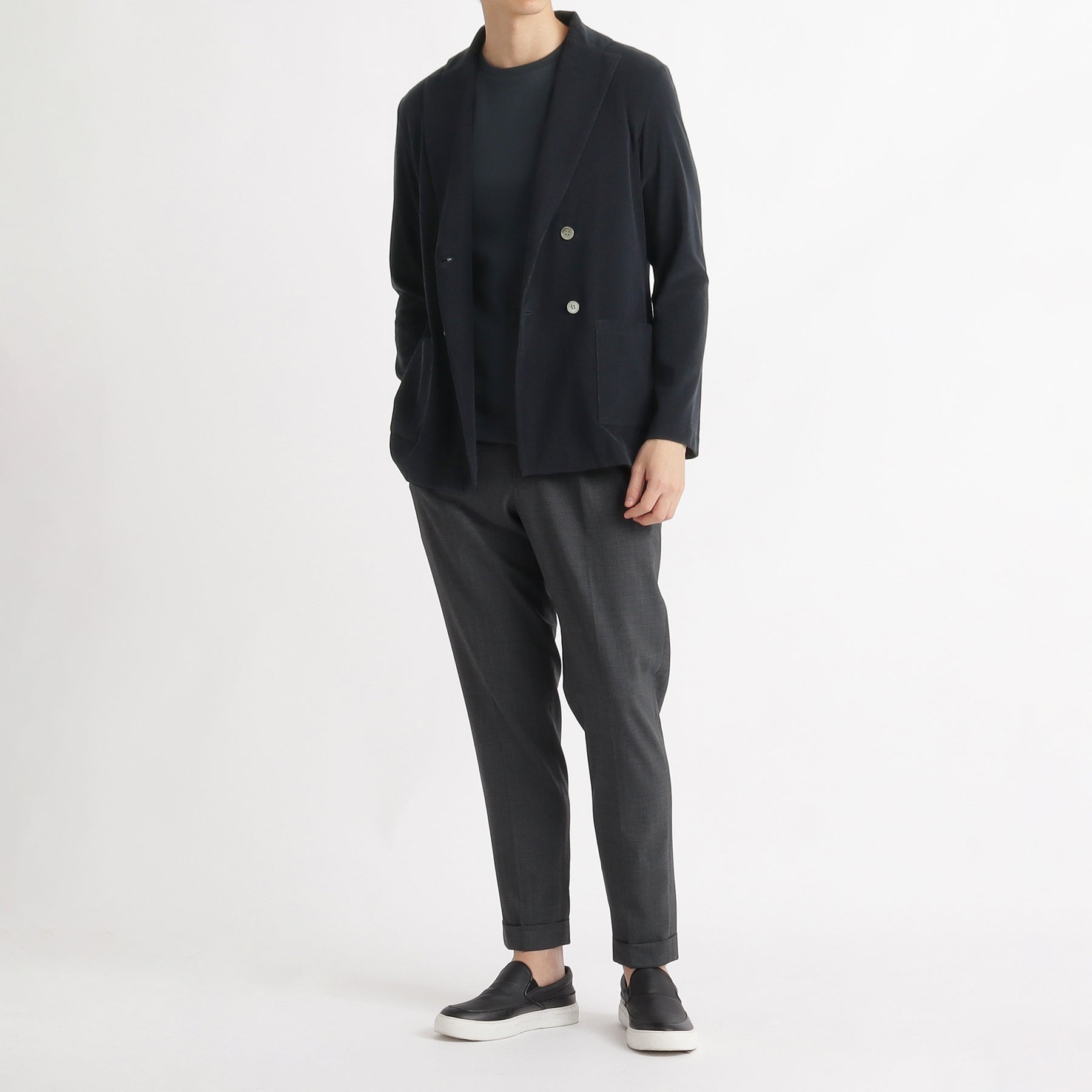 春夏の人気素材「スビンプラチナムマイクロパイル」を使った新作、カーディガンダブルジャケットが登場しました。カーディガンの気軽さとジャケットのキッチリ感を兼ね備えた、きれい目からカジュアルなシーンまで活躍の場が広がるアイテムです。