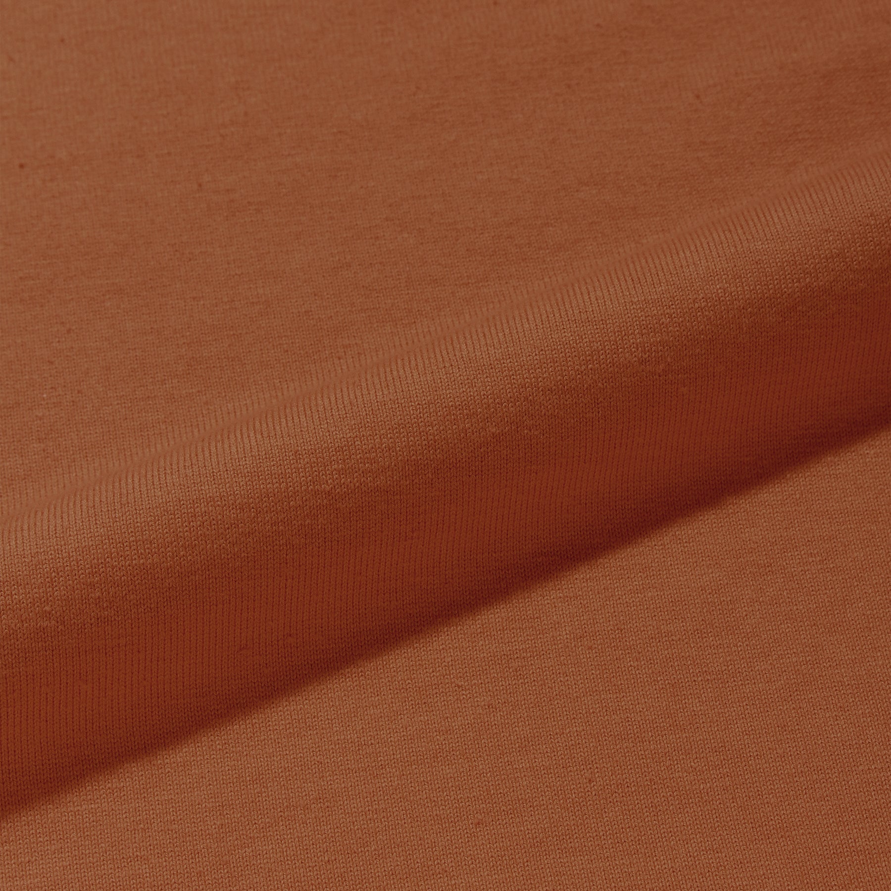 従来は廃棄されていた縫製工場から出る裁断くずを回収し、反毛(はんもう)という特殊な工程を経て、再び新たな糸として生み出された「リサイクルスビン」。その糸を度目を詰めて天竺編みすることで、味わいのある表情の生地が完成しました。しっかりとした厚みのある肉感、ネップなど凹凸感のある表情はこれまでのスビンプラチナムとは違った雰囲気をもたらしています。