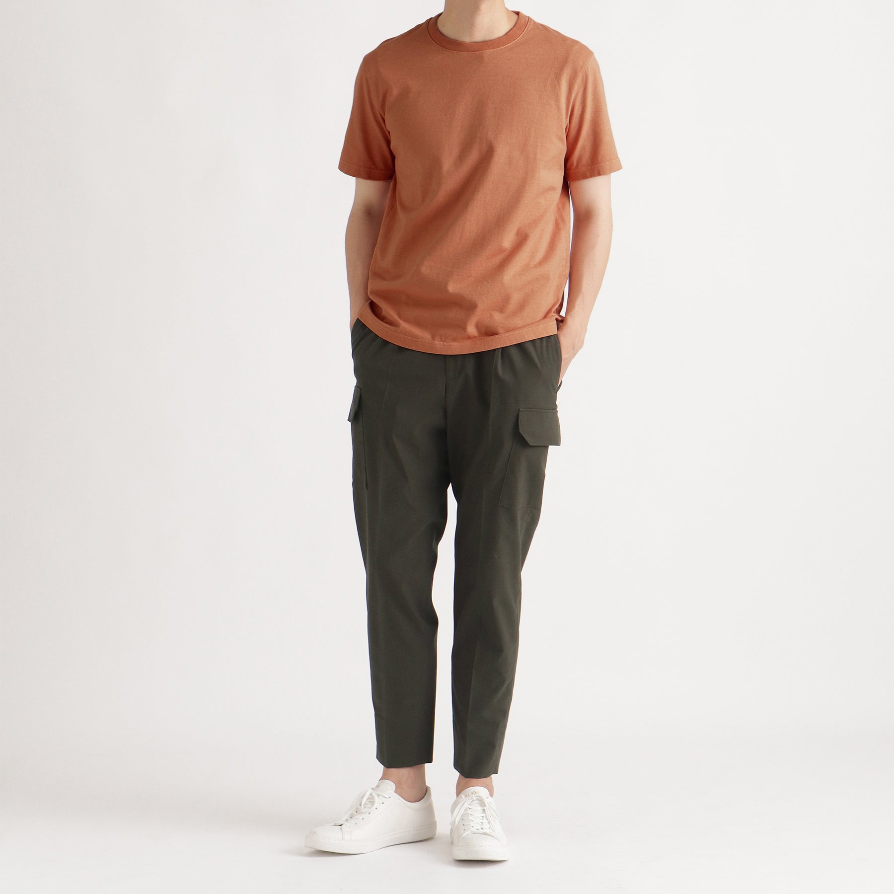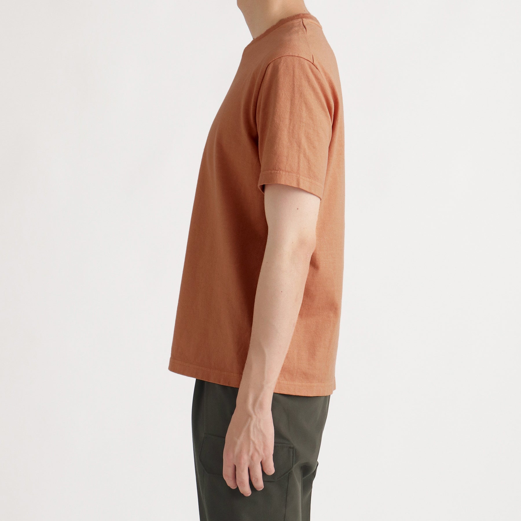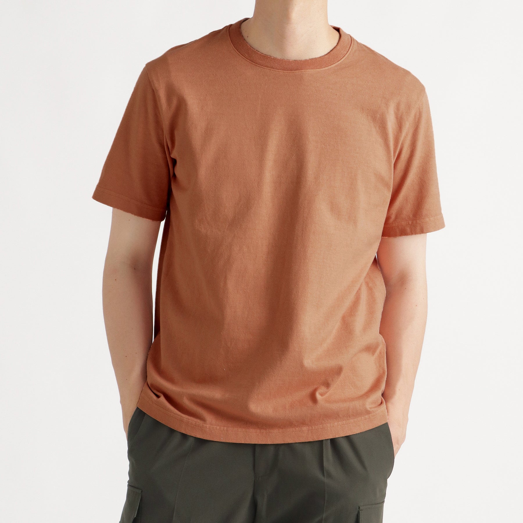 今までのテーラードTシャツとは設計から考え方まで全く別物と捉えてカジュアルな雰囲気を前面に押し出しています。サイズもテーラードTシャツに比べてワンサイズUPさせています。生地はほどよく地厚で透けはほとんどなく、武骨な雰囲気を持ったクルーネックです。左脇には+CLOTHETであることを示す+マークが配色で入っています。