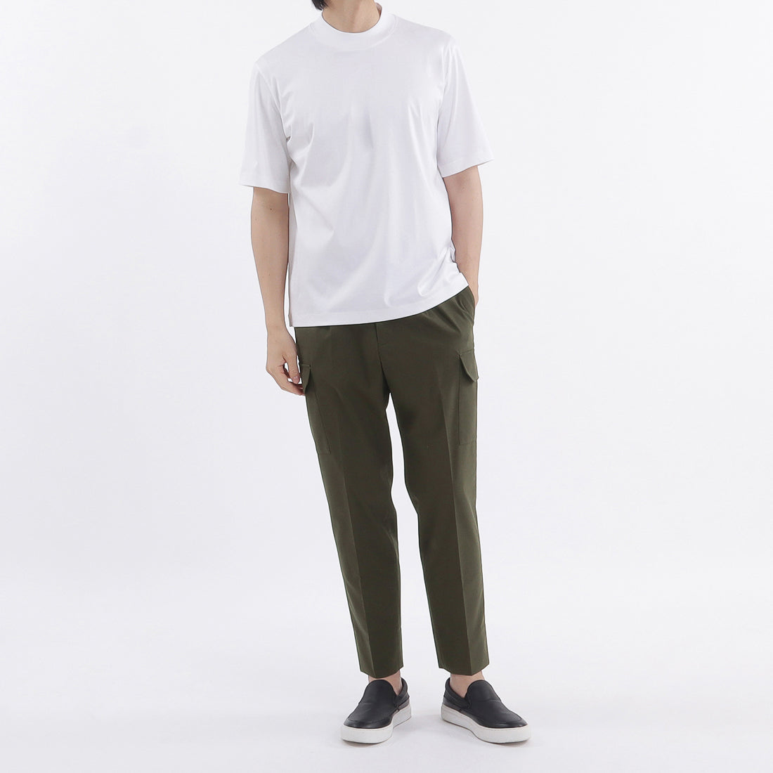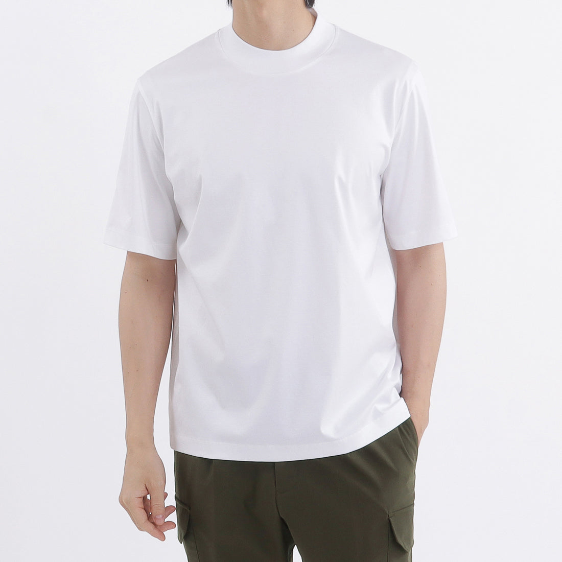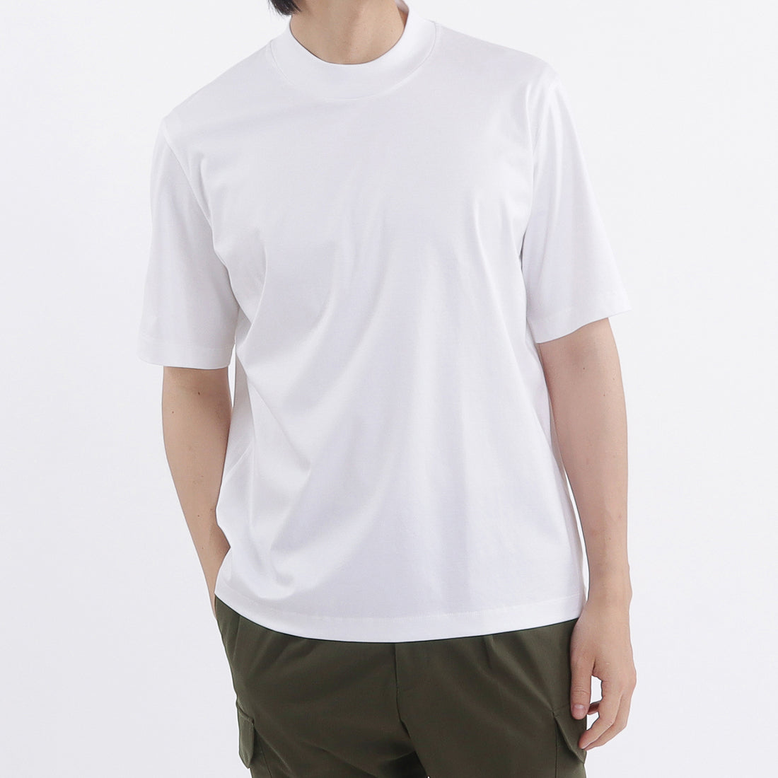発売開始以来、多くの方からご好評をいただいているエジプト産超長綿の新素材「GIZA45」を使用した新商品、「モックネックドレスTシャツ」が登場しました。 ミリ単位で襟の高さを調整して仕上げた人気のモックネック仕様に、圧倒的な光沢感、ハリコシ、接触冷感性を兼ね備えたGIZA45スムース素材を組み合わせています。