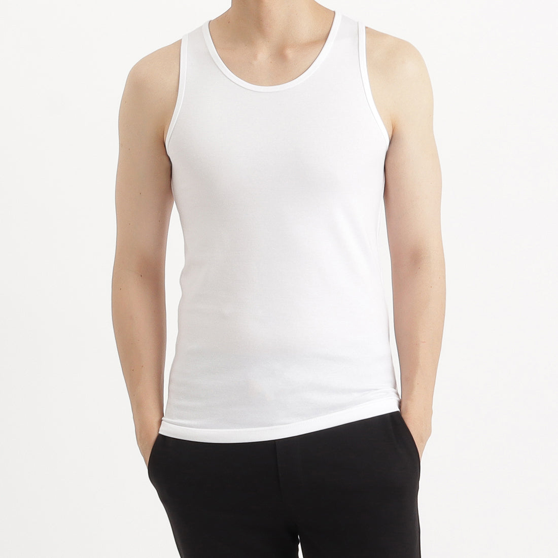 外出時だけでなく、ご自宅やリラックスしたシーンなどあらゆるシーンで快適な着心地を提供したいとの想いから開発がスタートしました。素材へのこだわりはそのままに、デザインや仕様などを一から見直し、出来る限りシンプルに作り上げることを念頭に開発を進めてきたコレクションから、インナーとして重宝するタンクトップが登場しました。