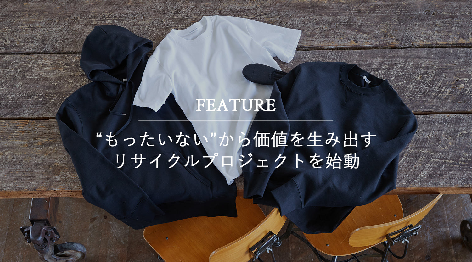 ブランドを代表する素材である「スビンプラチナム」の製品を生産する上で発生してしまう、裁断くず。それを廃棄するのではなく新たな糸にリサイクルすることを目指し立ち上がった「リサイクルスビン」プロジェクトからカジュアルでゆとりのある裏毛フーディーが登場です。