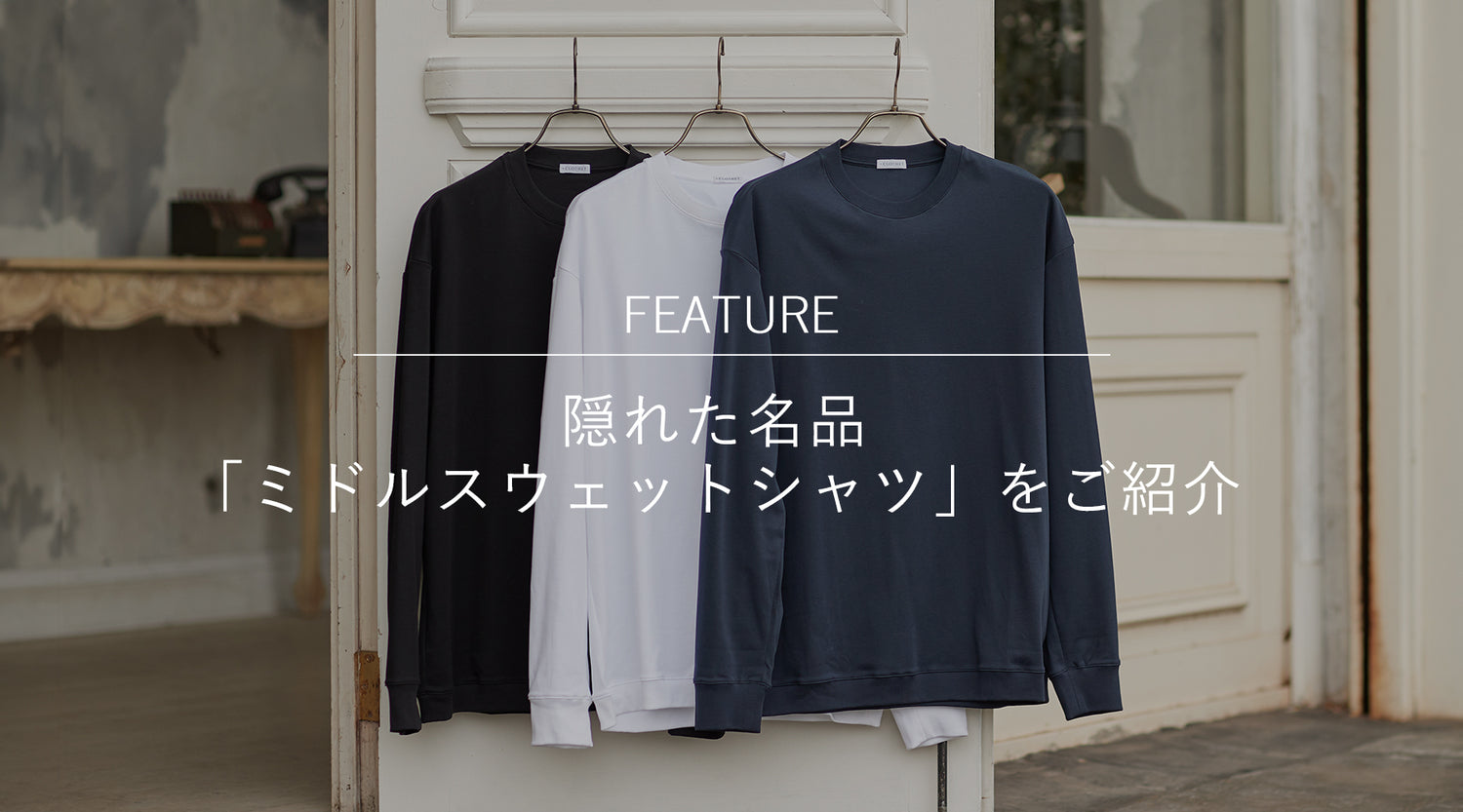 一枚でスタイリングが完成すると好評の新感覚スウェットシャツ「ミドルスウェットシャツ」に新しくスビンプラチナムスムースが加わりました。ベーシックでありながら計算されたシルエットでオーバーサイズに抵抗がある人にこそ着てもらいたい大人のためのクルーネックです。