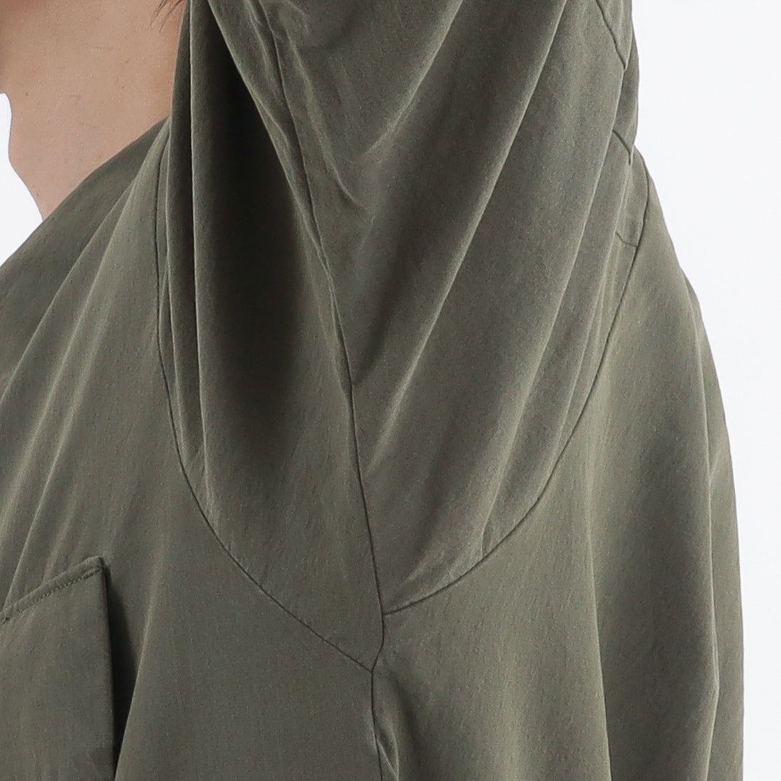 1980年代にUS ARMYに採用され、兵士に着用されていたBDUジャケット。※BDUとはBATTLE DRESS UNIFORMの略。年代は初期、中期、後期に分けることができ、クロスクローゼットでは後期型をベースに現代的にアップデートしています。袖は太くなりすぎず、細くなりすぎないように調整し、エルボーパッチなどのディテールは省いていますが、左胸のポケット内部にはペンホルダーを付けるなど、オリジナルのディテールを踏襲しています。