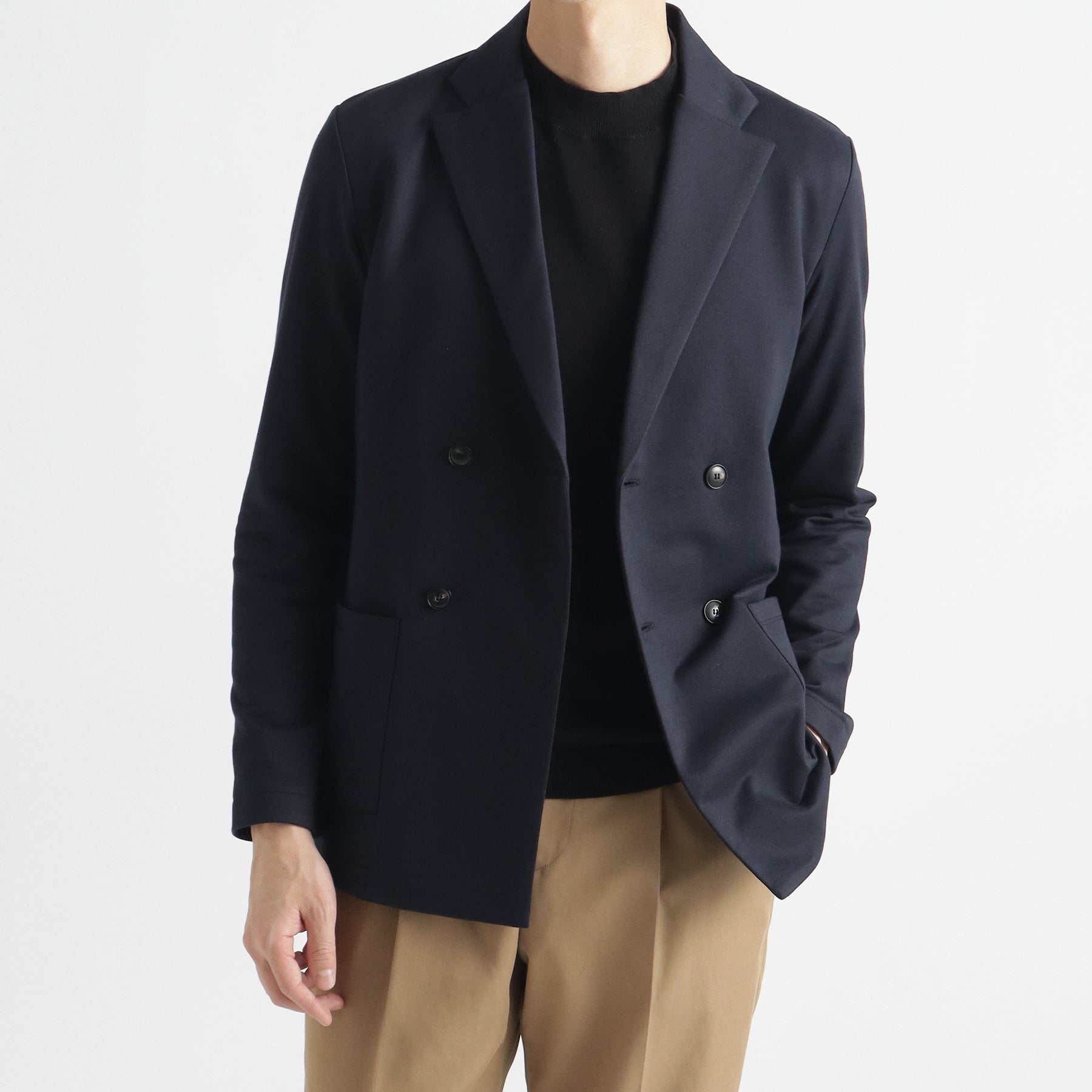 ジャケットよりラフに、カーディガンよりキッチリと着ることのできるアイテムをイメージにデザインされたカーディガンダブルジャケット。カーディガンをベースにしながらもフロントをダブル合わせのデザインにすることでカジュアルからキレイめまで幅広いコーディネートに対応することができます。