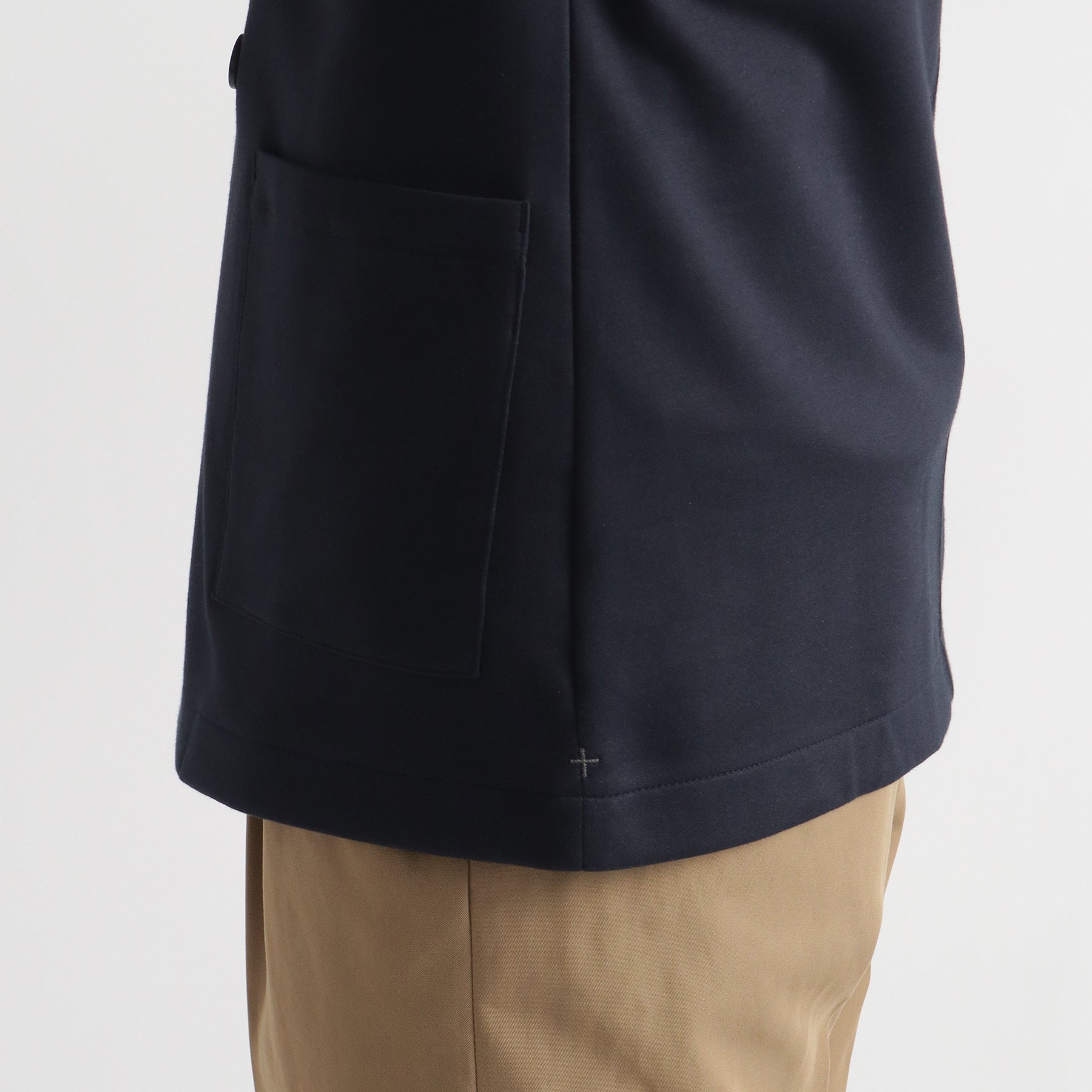 スビンプラチナムシリーズの人気素材「スビンプラチナムスムーステリー」を使った新型ジャケットの登場です。カーディガンの気軽さとジャケットのキッチリ感を兼ね備えたオンオフ活躍の場が広がる新感覚のアイテムです。