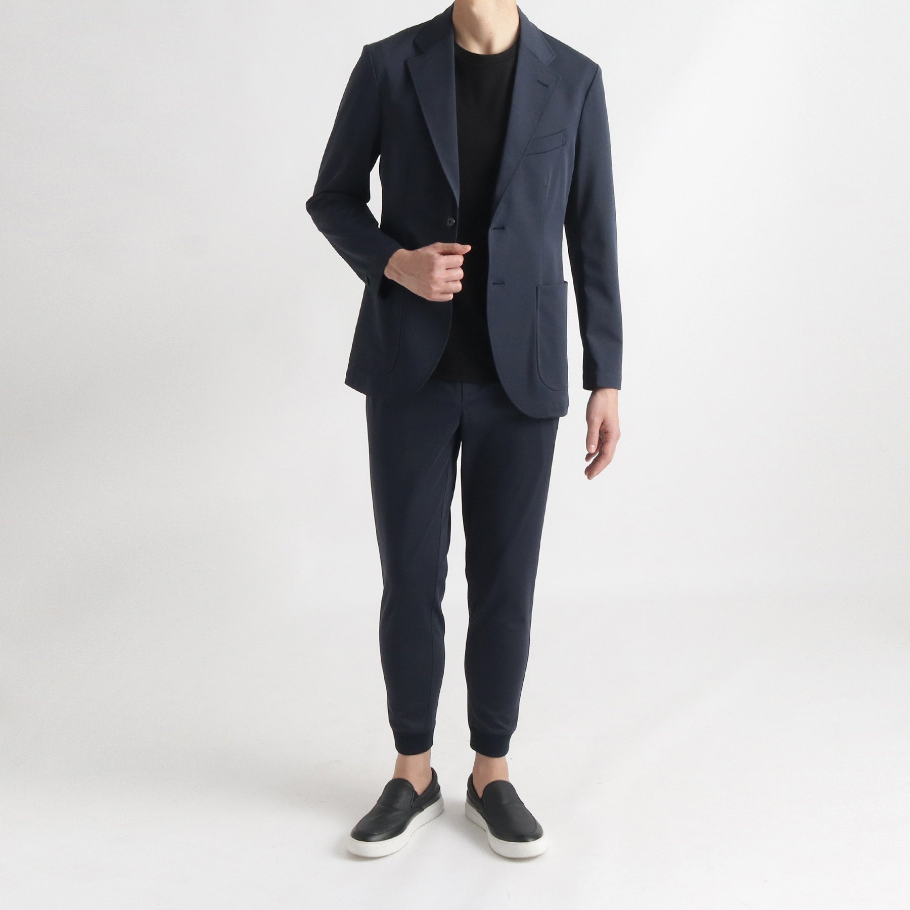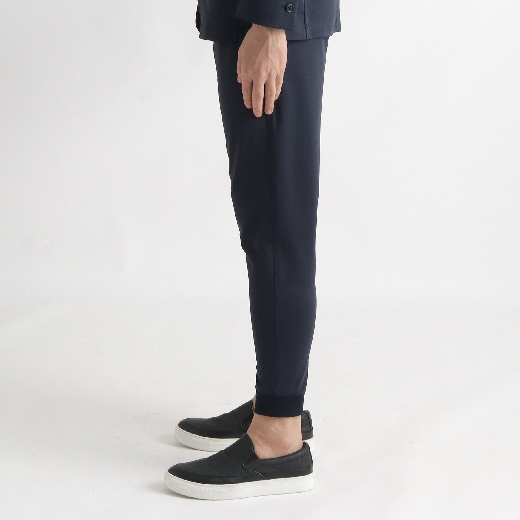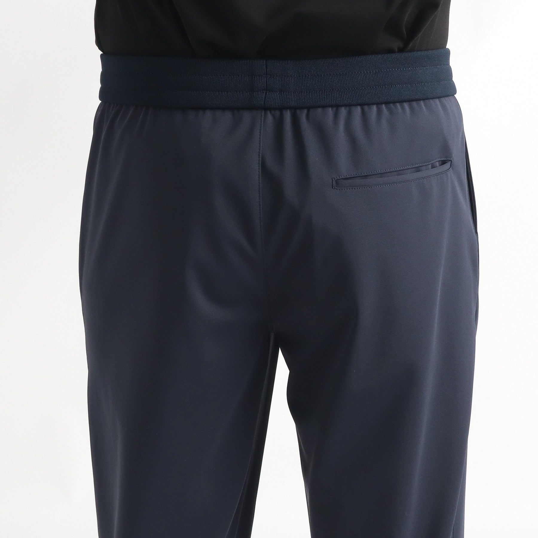 ドレス仕立てのトラウザーパターンを基に仕立てているため、動きやすさとシルエットの美しさを両立。糸の撚り回数を極限まで上げたポリエステル糸を使って編み上げたカットソー生地で作られたジョガーパンツは非常にシワになりにくい特性があります。同素材のフーディーやクルーネックスウェットとのセットアップも可能。すぐれた機能性の中に上品さを持ち合わせてた仕上がりになっています。
