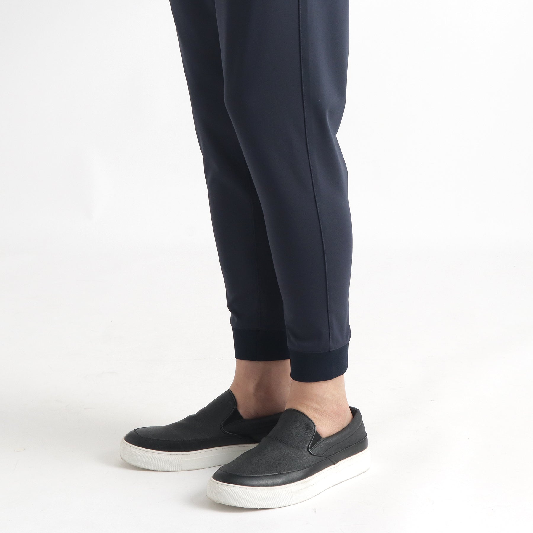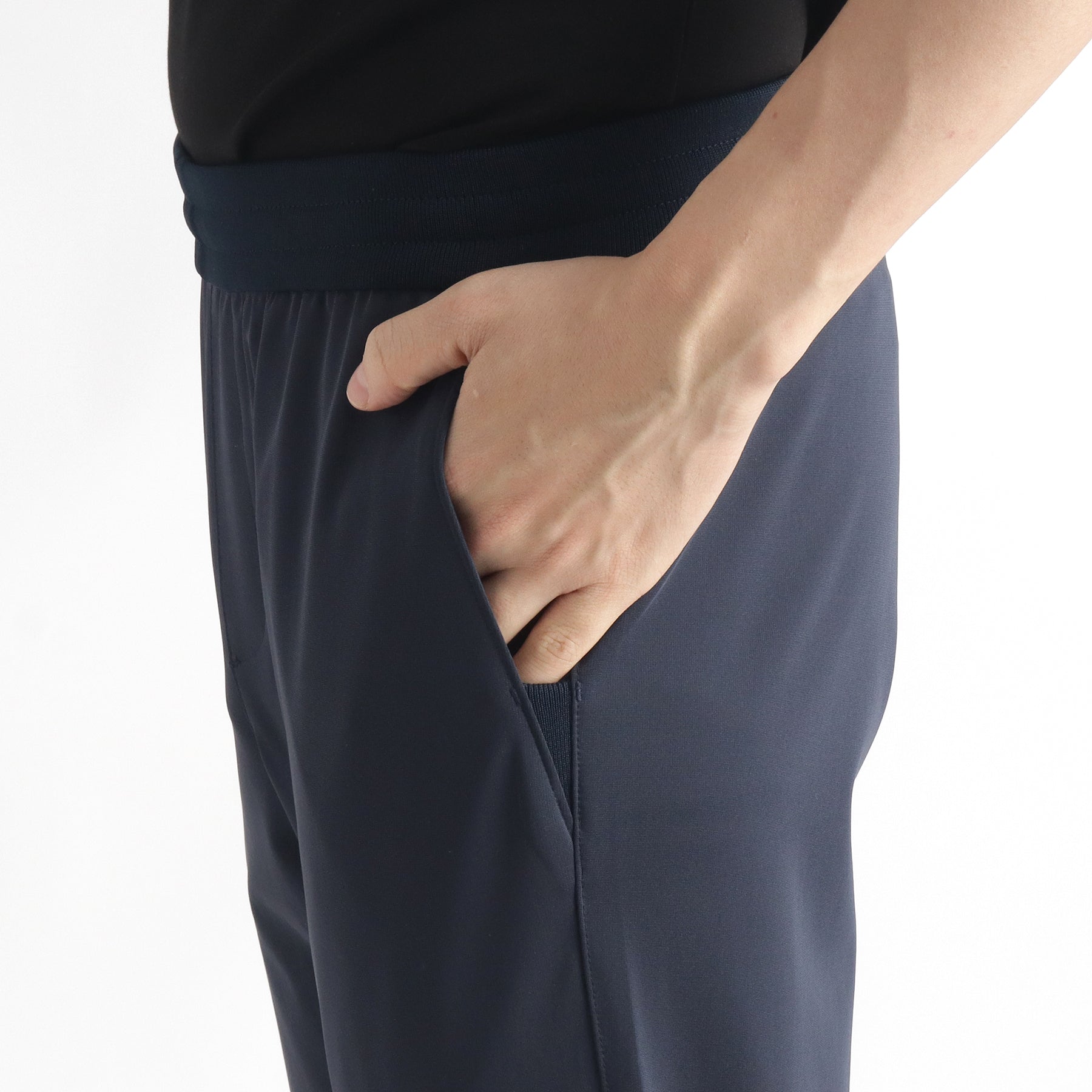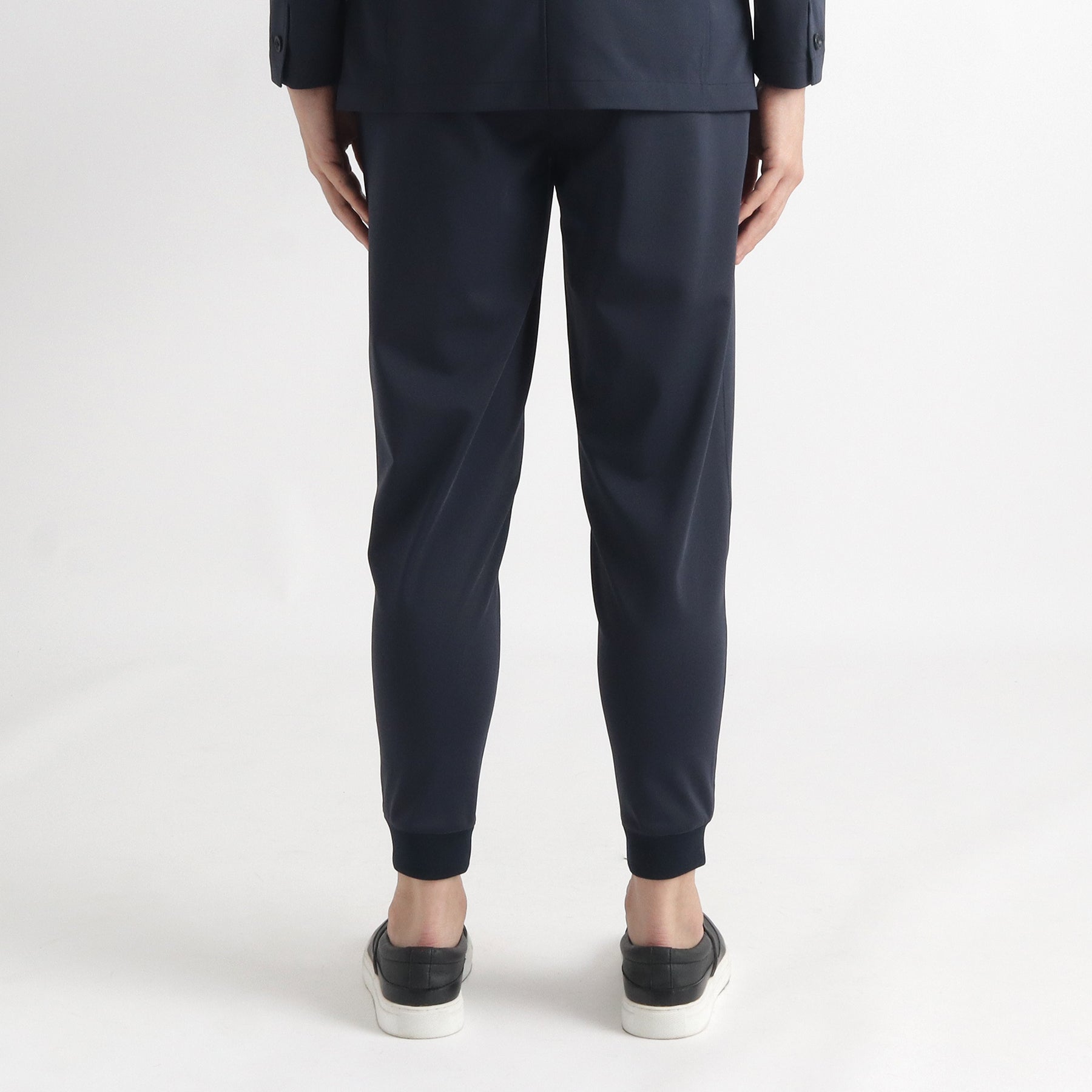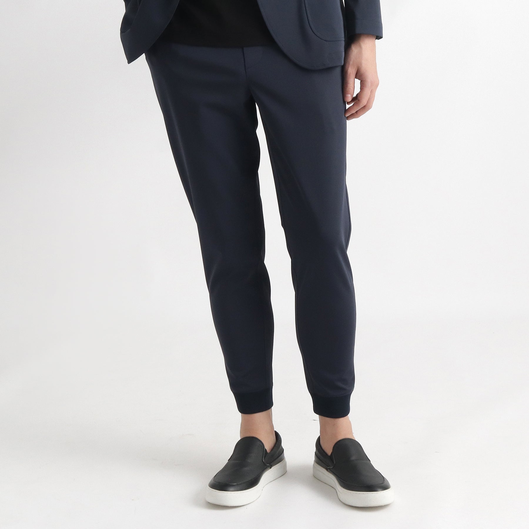 ドレス仕立てのトラウザーパターンを基に仕立てているため、動きやすさとシルエットの美しさを両立。糸の撚り回数を極限まで上げたポリエステル糸を使って編み上げたカットソー生地で作られたジョガーパンツは非常にシワになりにくい特性があります。同素材のフーディーやクルーネックスウェットとのセットアップも可能。すぐれた機能性の中に上品さを持ち合わせてた仕上がりになっています。