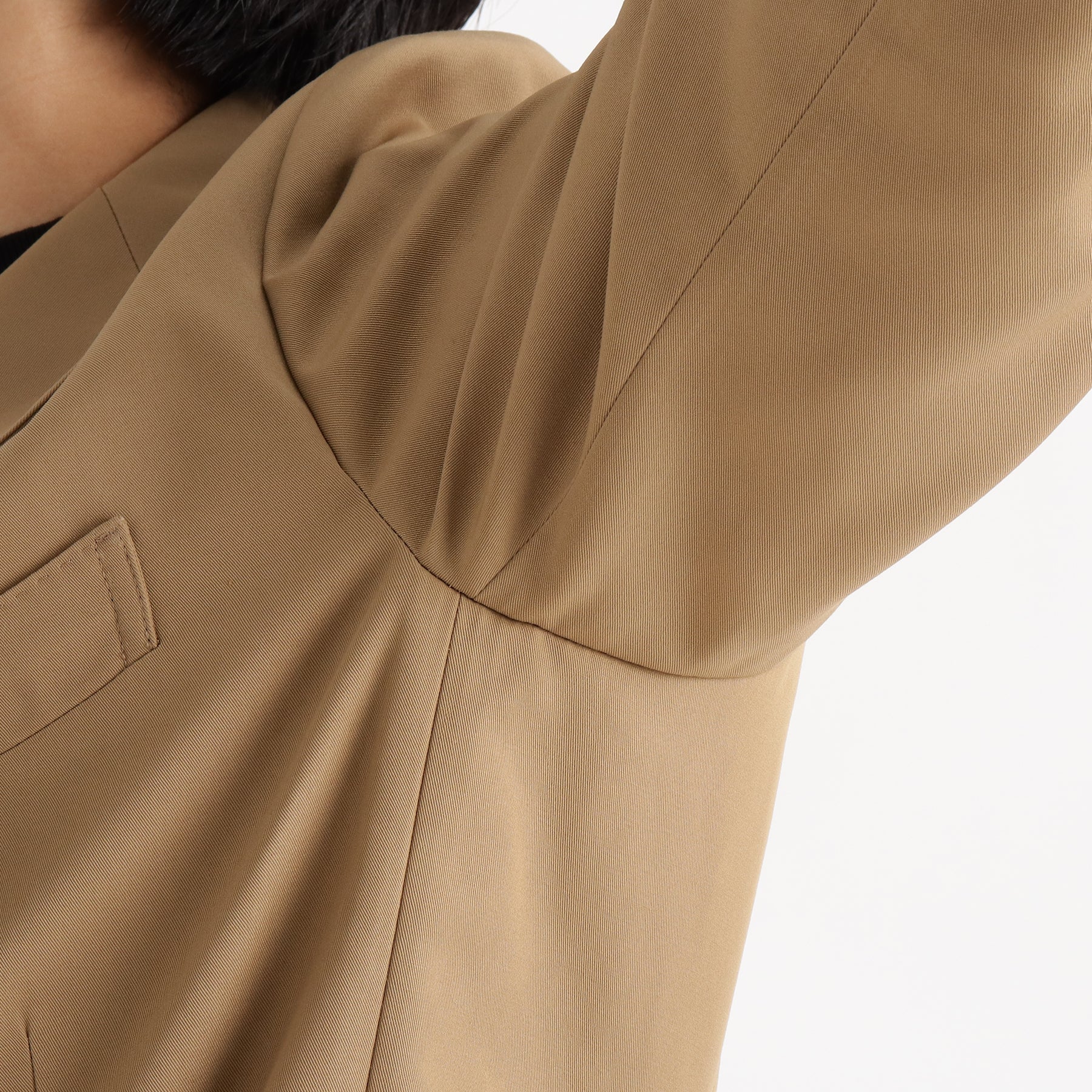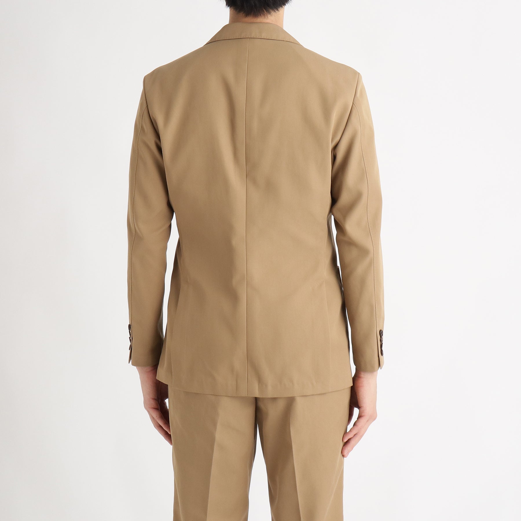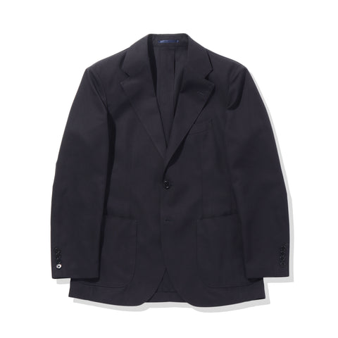 ラペルを広く取り、Vゾーンを狭くすることでクラシックなエッセンスがちりばめられたジャケットはボタンを留めた時の美しいシルエットだけでなく、前身頃を落として僅かに外側に逃がすことによってボタンを外して着用した時にもシルエットがシャープに見えるように仕立てています。幅広のラペルでクラシックな表情に仕上がっておりタイドアップにもおすすめのこだわりの一着。同素材のトラウザーも展開しているためセットアップでの着用も可能。 左袖開きには+CLOTHETであることを示す+マークが入っています。