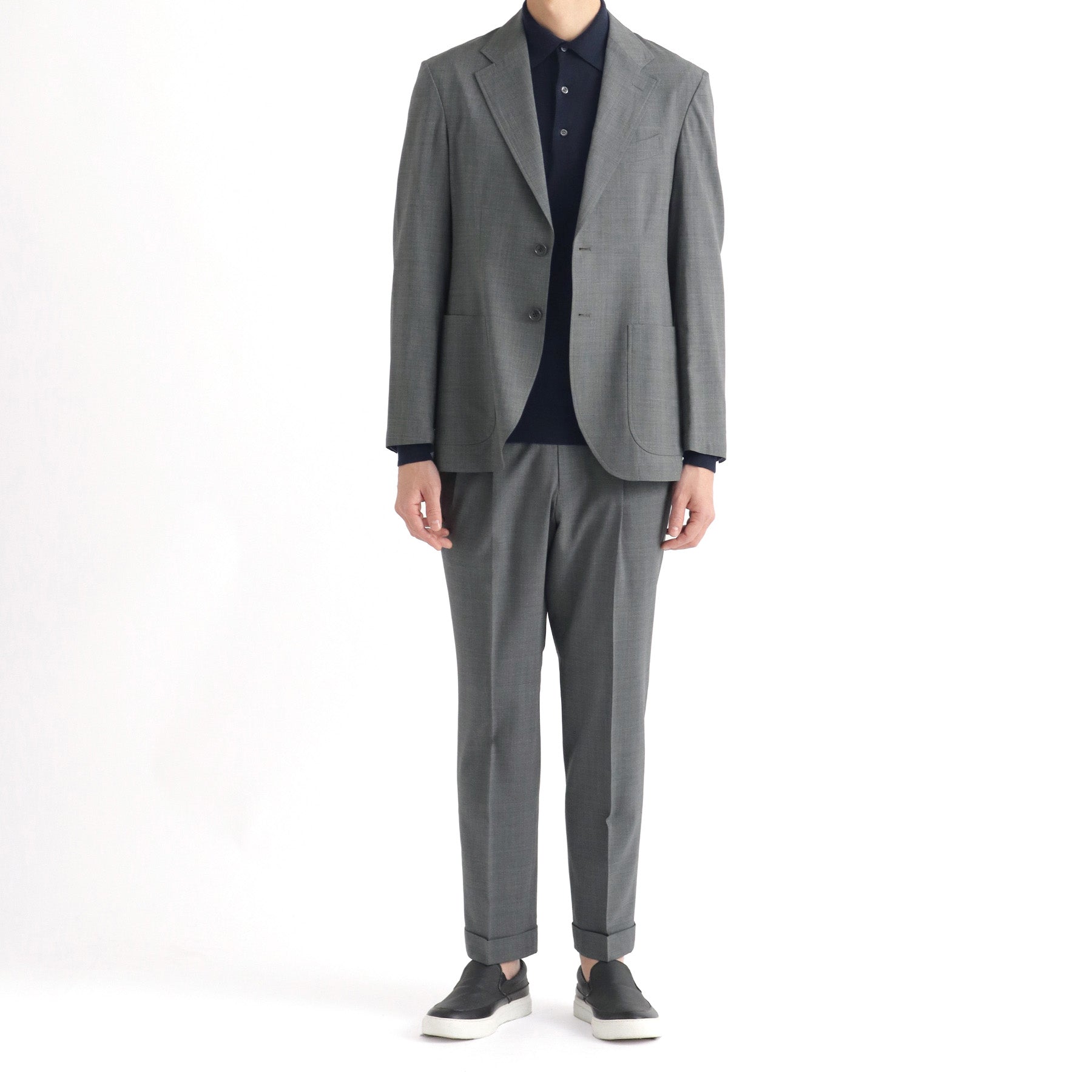 SUPER140'sの非常にFINEな原料を使って紡績された100番手双糸を高密度に織り上げたトロピカル(平織)です。 ウール本来の吸放湿性に加え、特殊加工によりナチュラルストレッチ・イージーケア性も兼ね備えたマルチファンクション素材。160g/mとシャツ生地のように軽く作られた素材で、着ていることを忘れさせるほどの着心地を可能にしています。