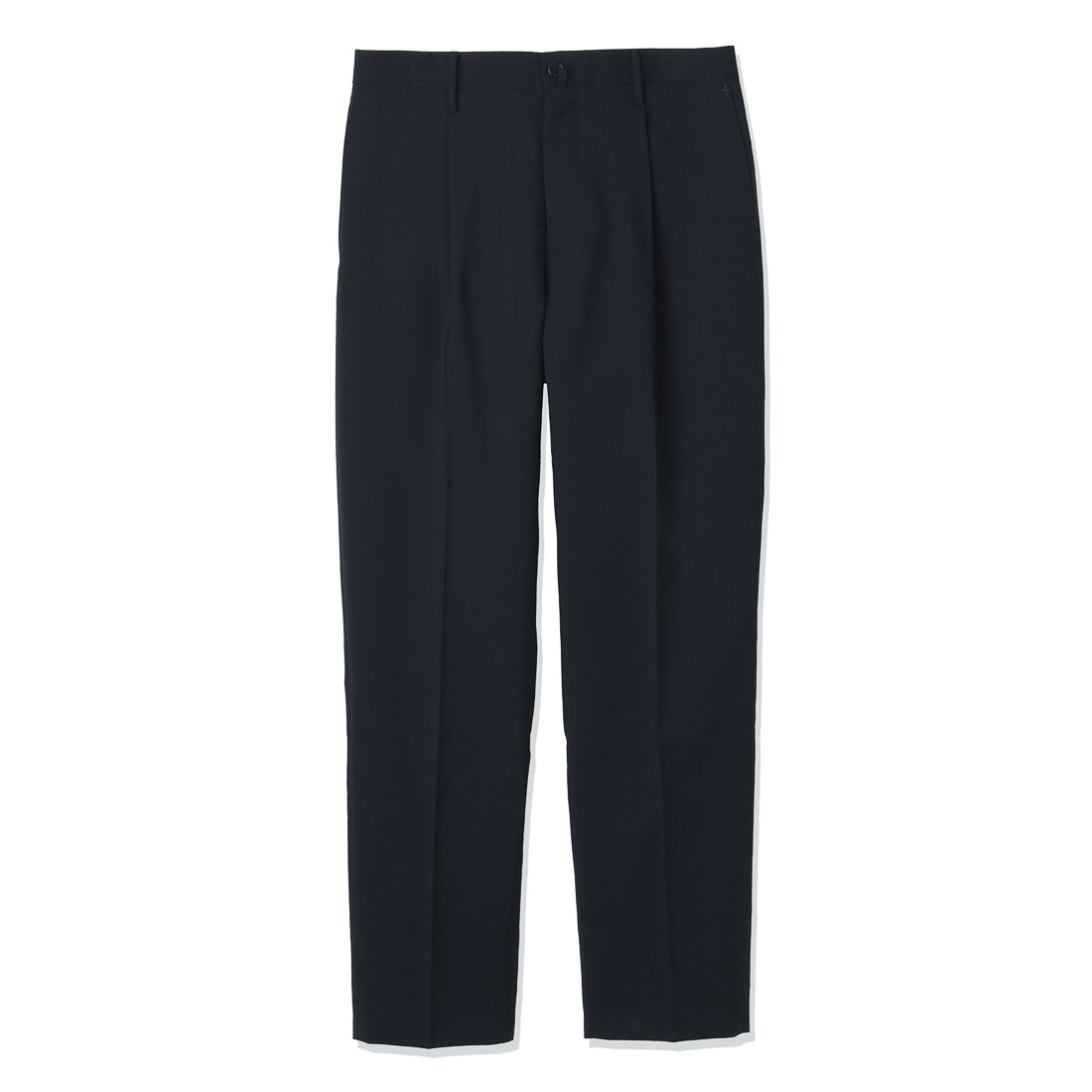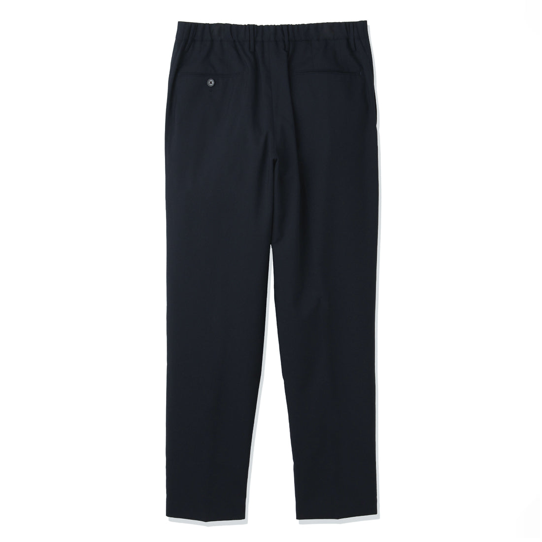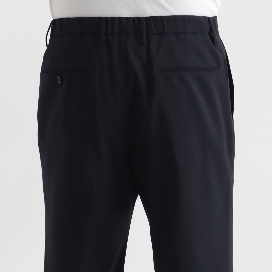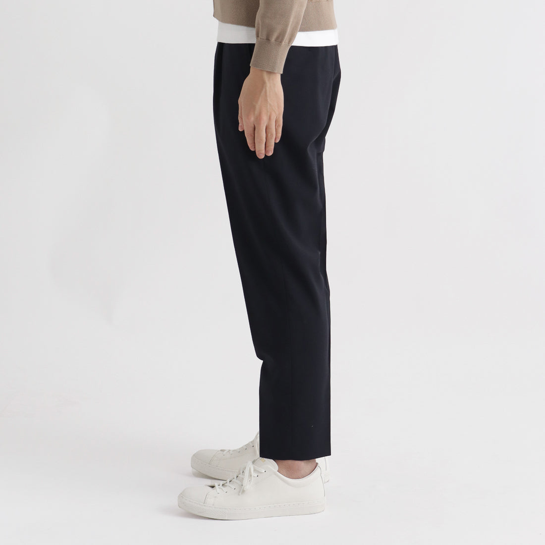 ウールベースの高機能素材「TECHWOOL®」シリーズの細番手ポリエステルウールトロピカルを使用したワンプリーツトラウザーです。