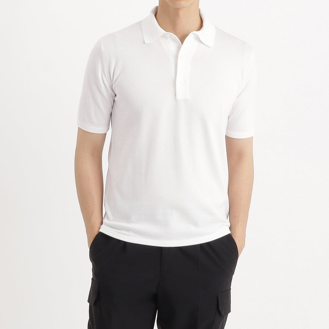 テーラー監修のポロシャツの型紙をベースに作製されたスビンニットポロシャツ。