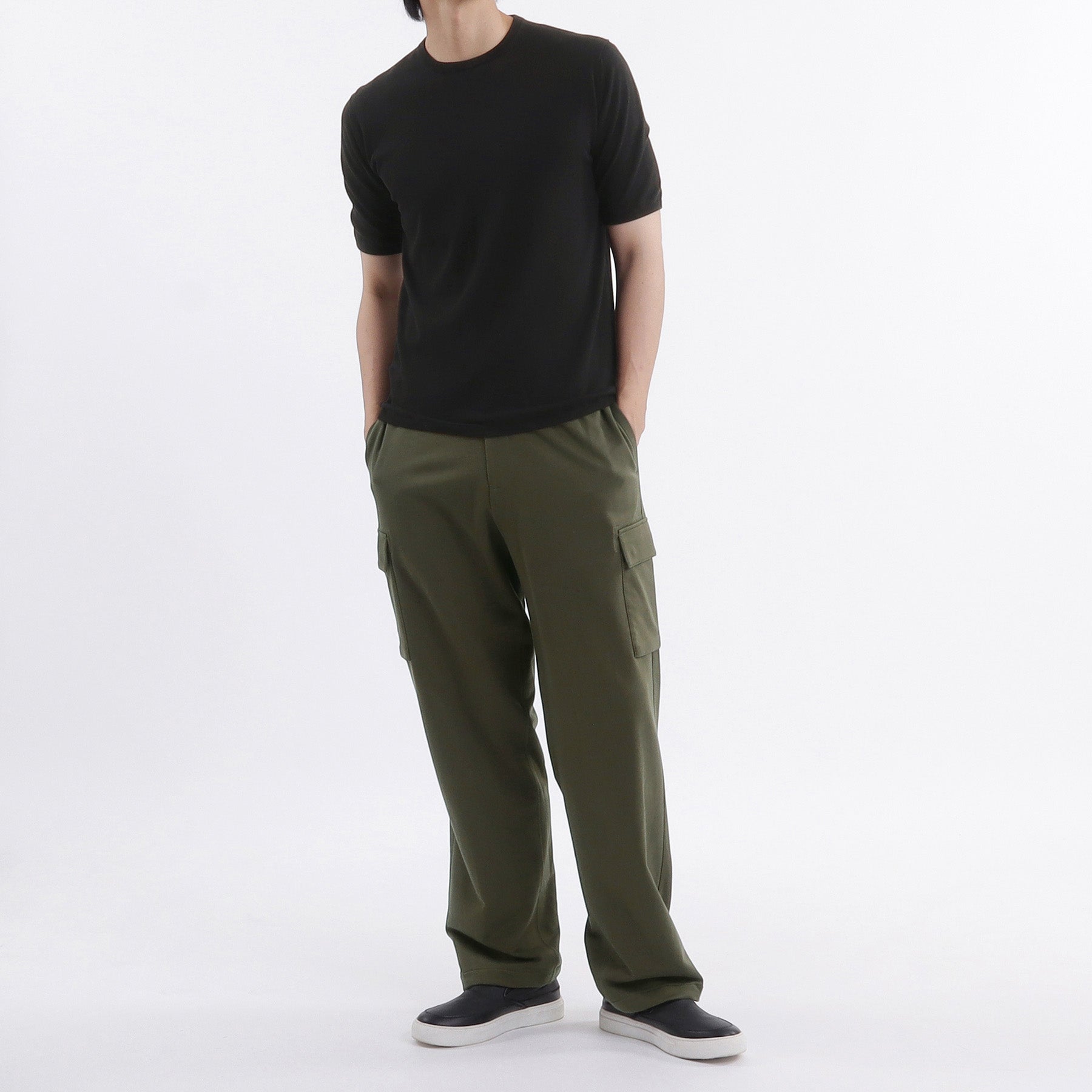 シーズンを問わずに活躍する希少超長綿を使った人気素材「スビンプラチナムスムーステリー」コレクションに新たな商品が加わりました。現代的にアップデートした大人のためのワイドカーゴパンツの登場です。
