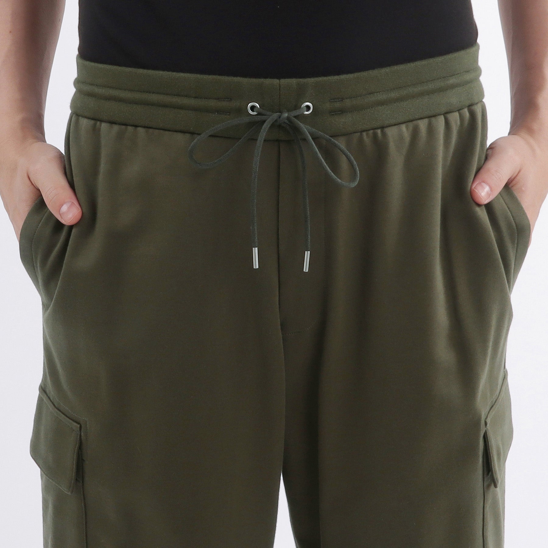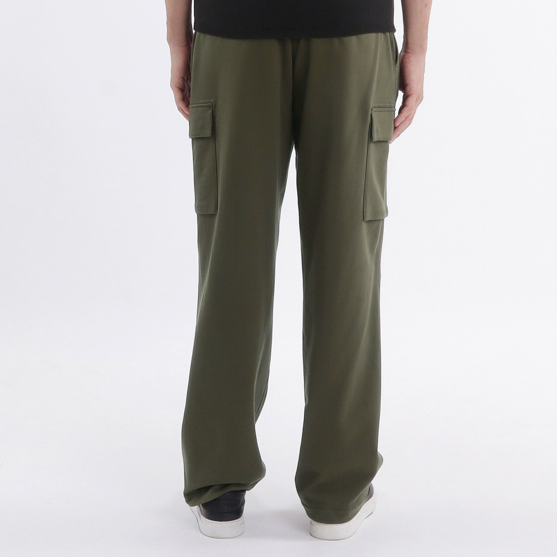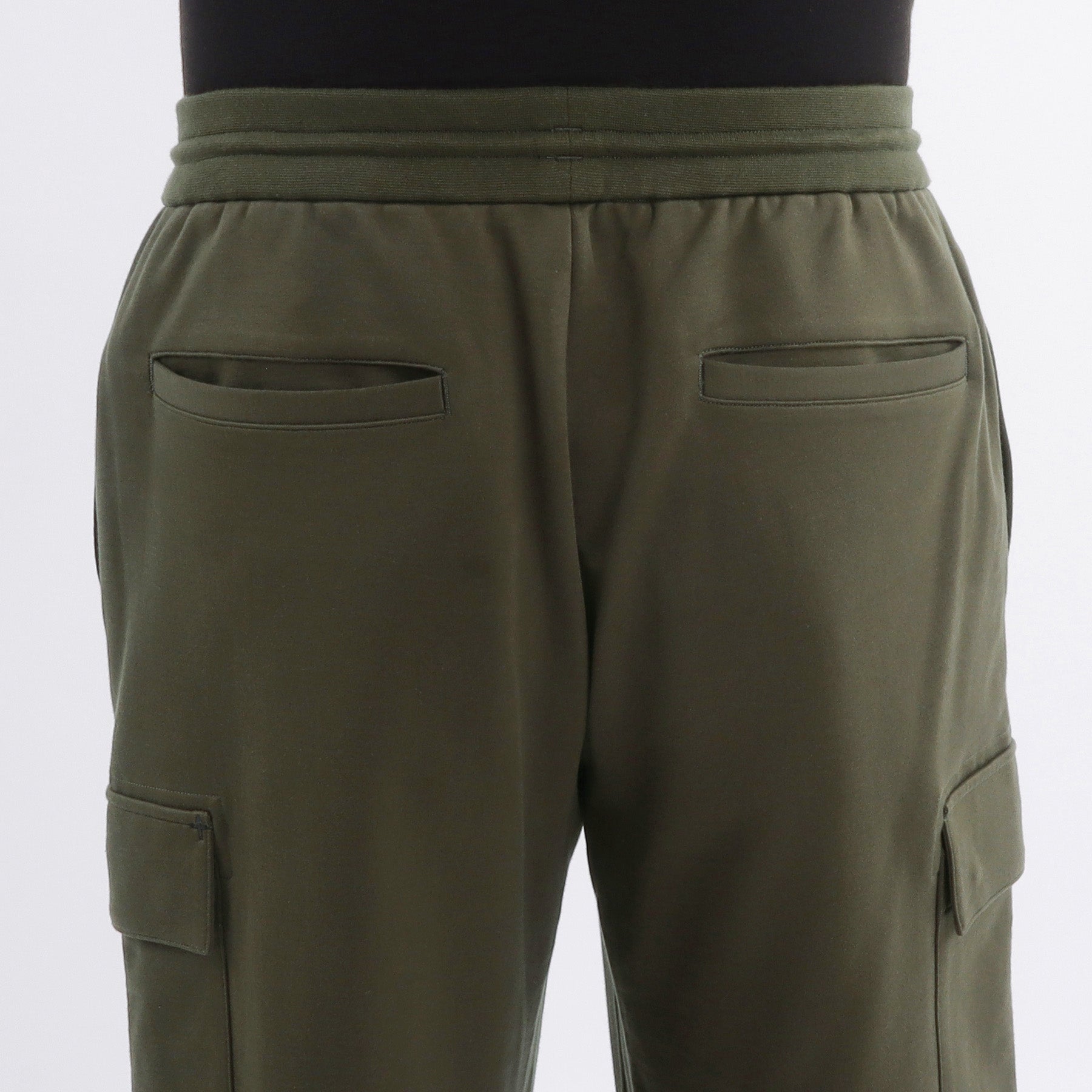 見た目にはスッキリさせながらもポケットの底にだけマチを配置することでカーゴポケットの収納力をアップしています。裾にスピンドルを通しているので好みに調整して絞ることができます。シルエットはゆるくテーパードの効いたワイドシルエットになっています。同素材で展開しているスウェットシャツやフーディーとセットアップで着ることもできます。