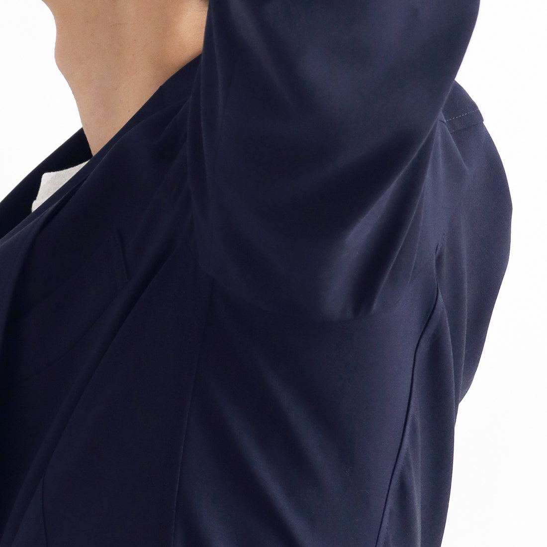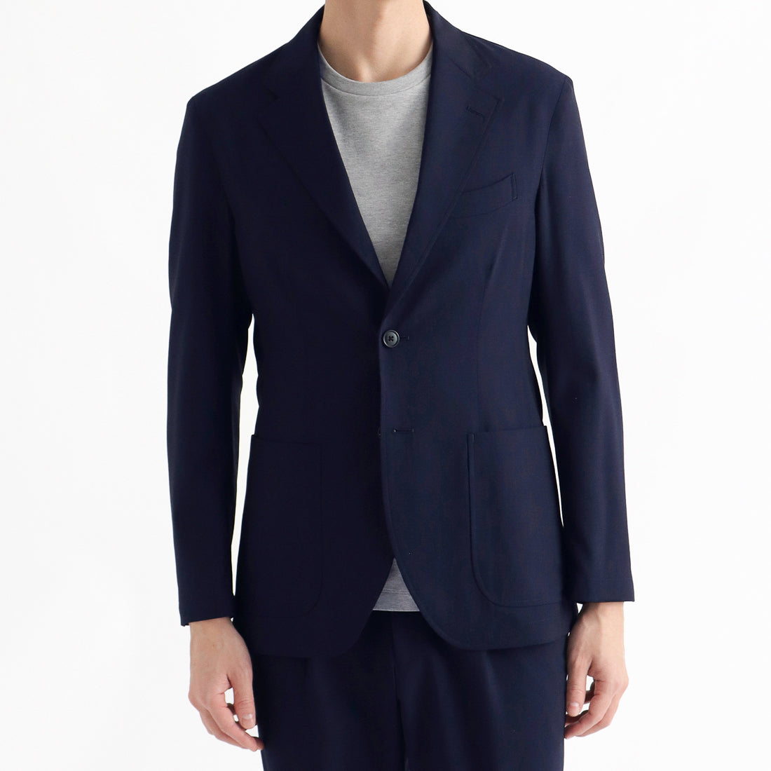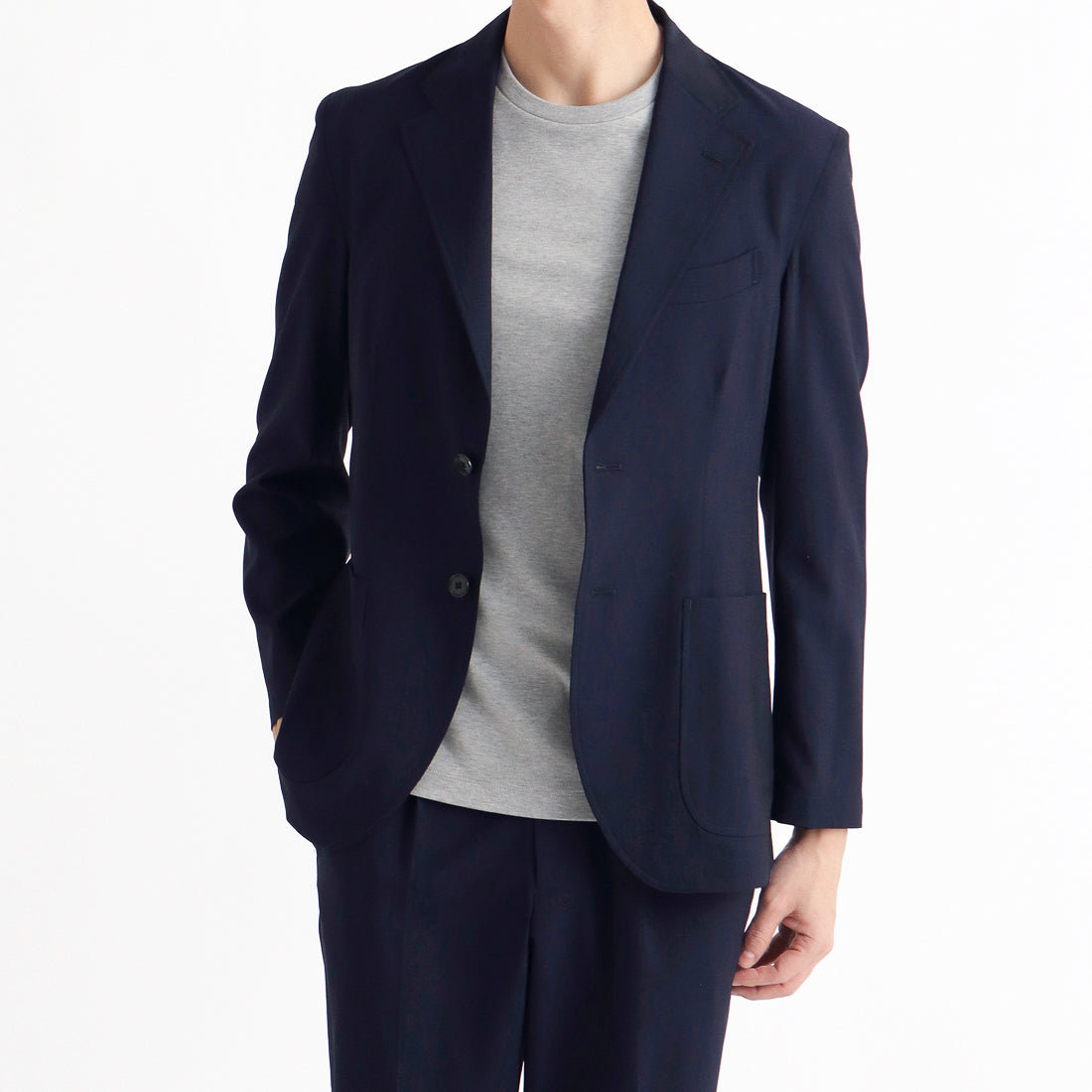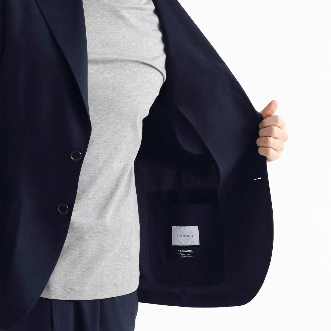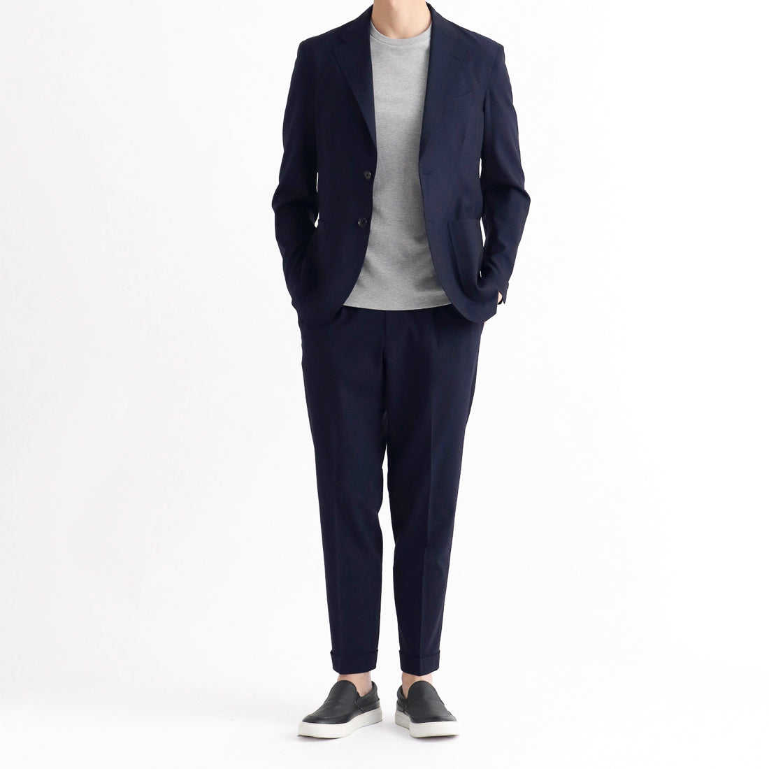 限定カラー:ディープブルーのテックウール®トロピカルセットアップについて詳しくご説明しています。