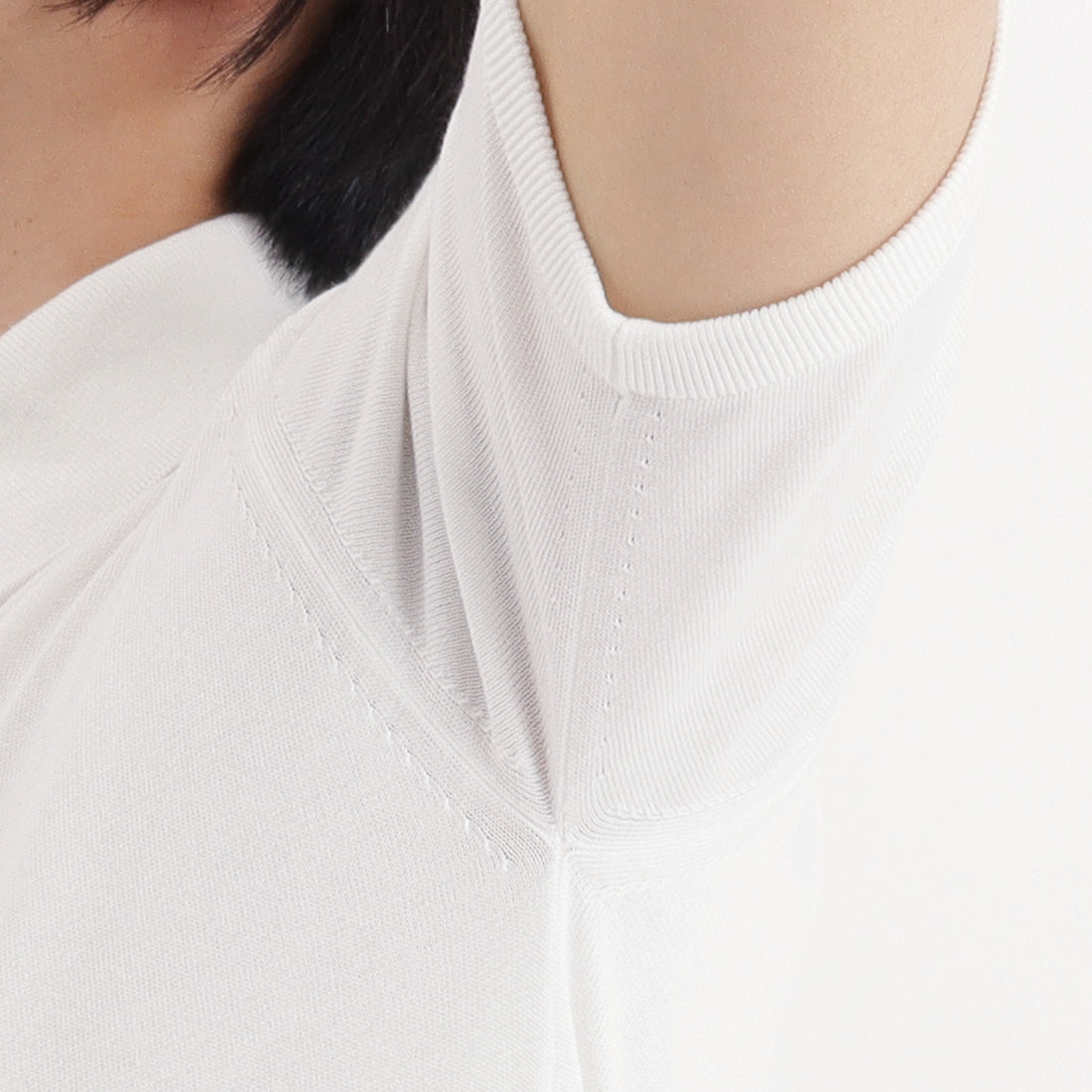 +CLOTHET では一般的なニットでは作製しない型紙を作ることから始め、人体のラインやニットの特性を考え、肩や腕周りの動きを検証することで動きやすくもごわつかない着心地とシルエットを実現しています。