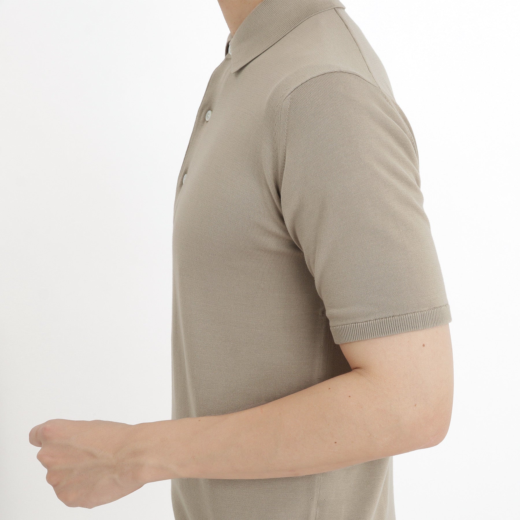 テーラー監修のポロシャツの型紙をベースに作製されたスビンニットポロシャツ。