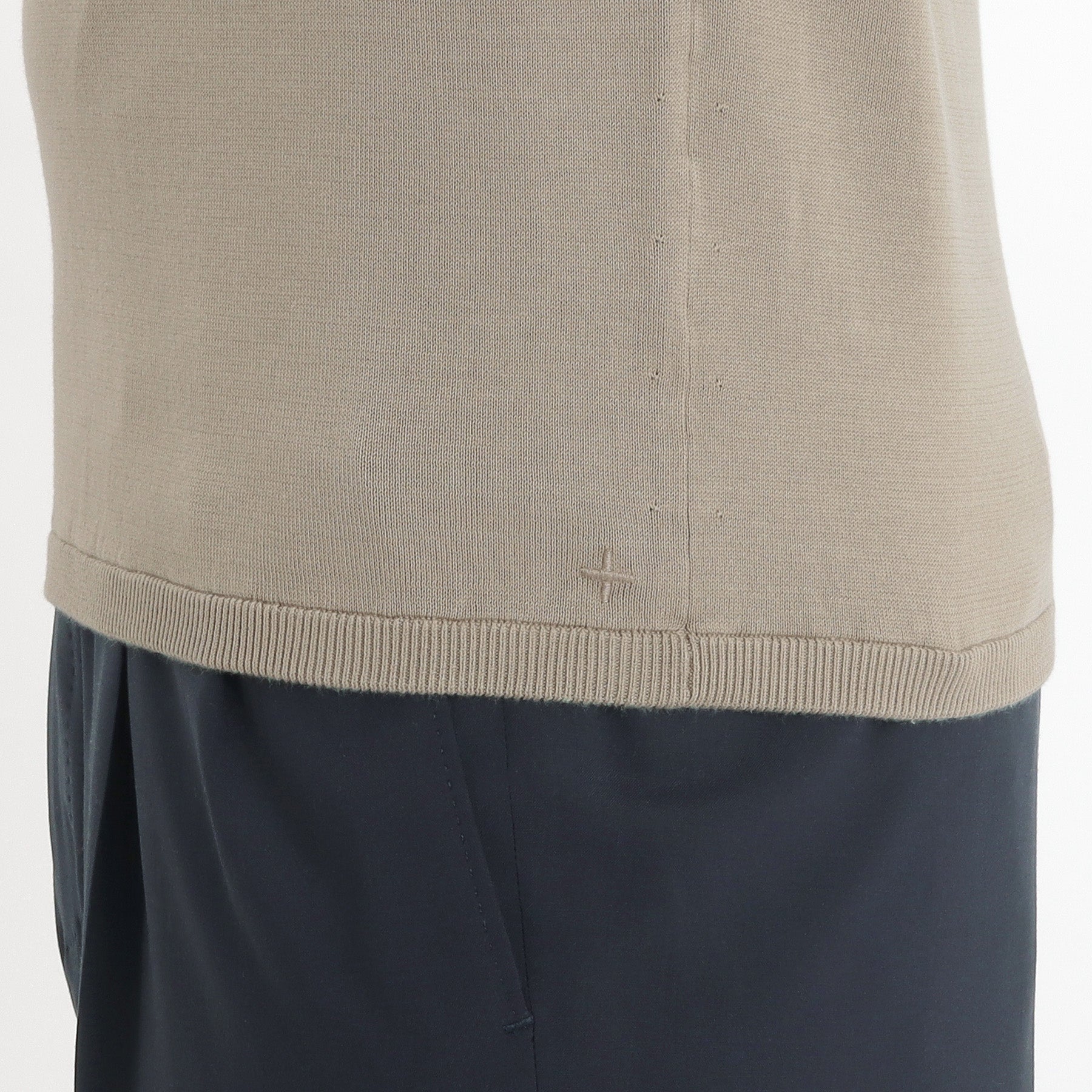 編み糸をスビンコットンからスビンプラチナム(ファーストピック)にブラッシュアップして作製されたニットポロシャツ。スビンプラチナムならではの編み目の綺麗さや肌触りで今まで以上に上品かつ大人な雰囲気に。