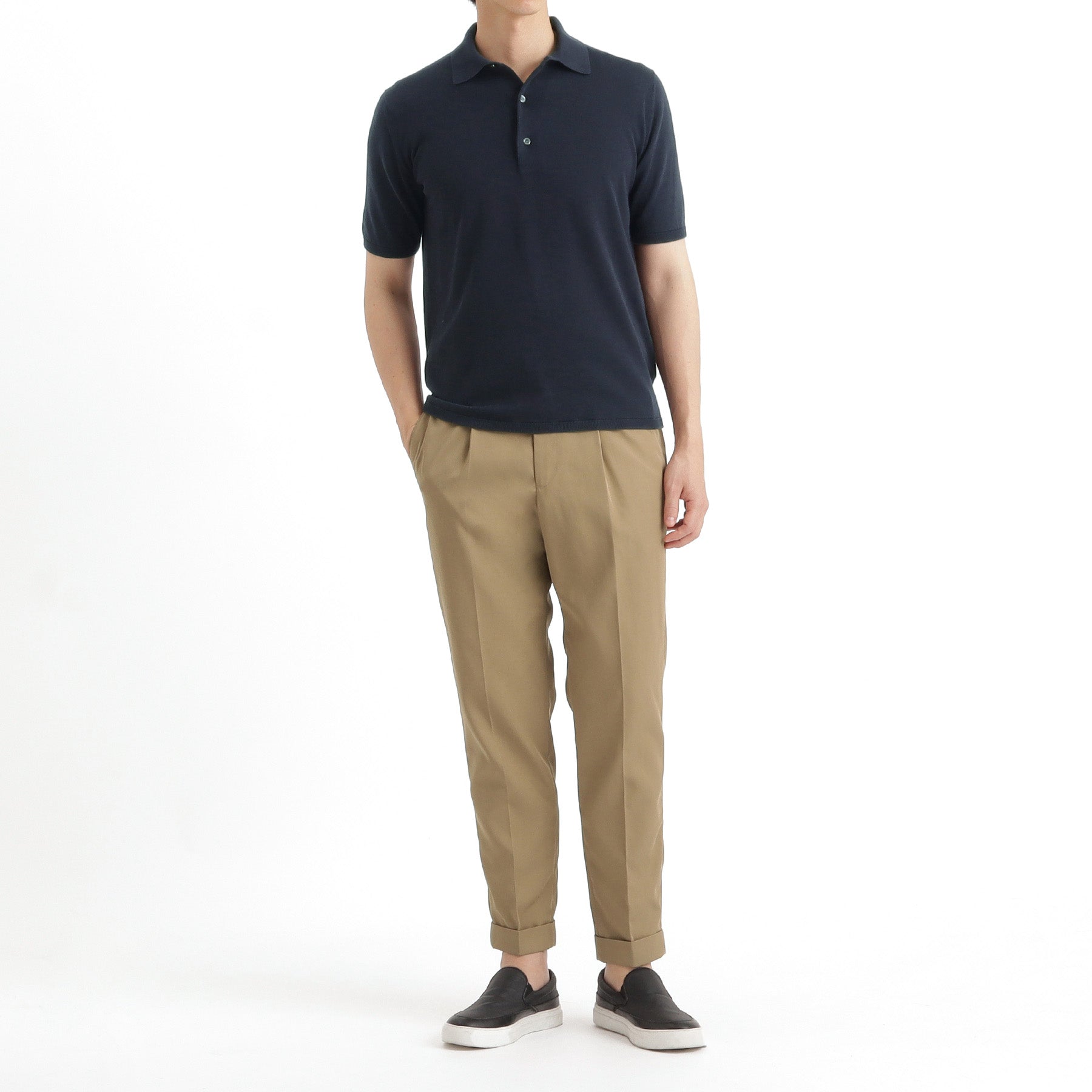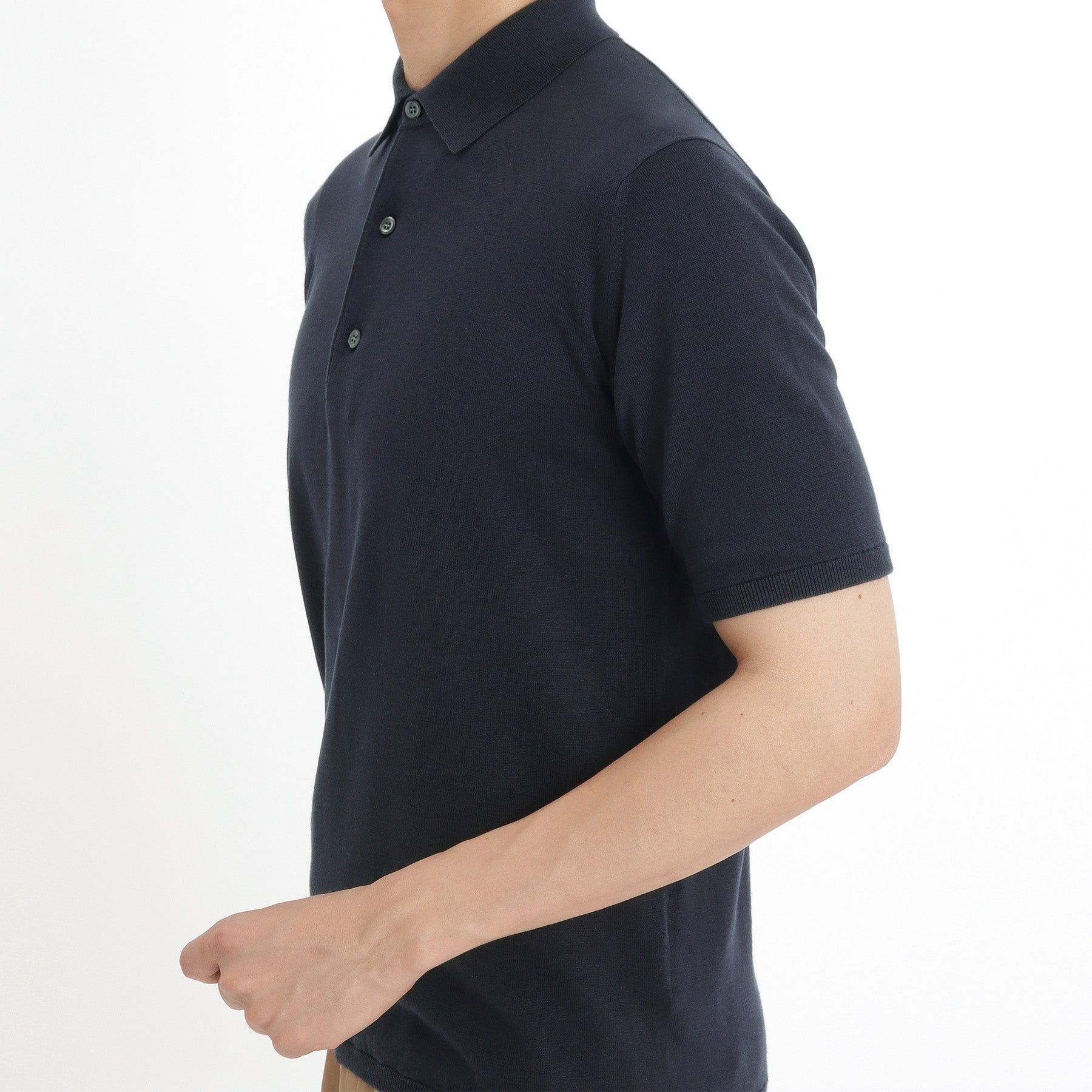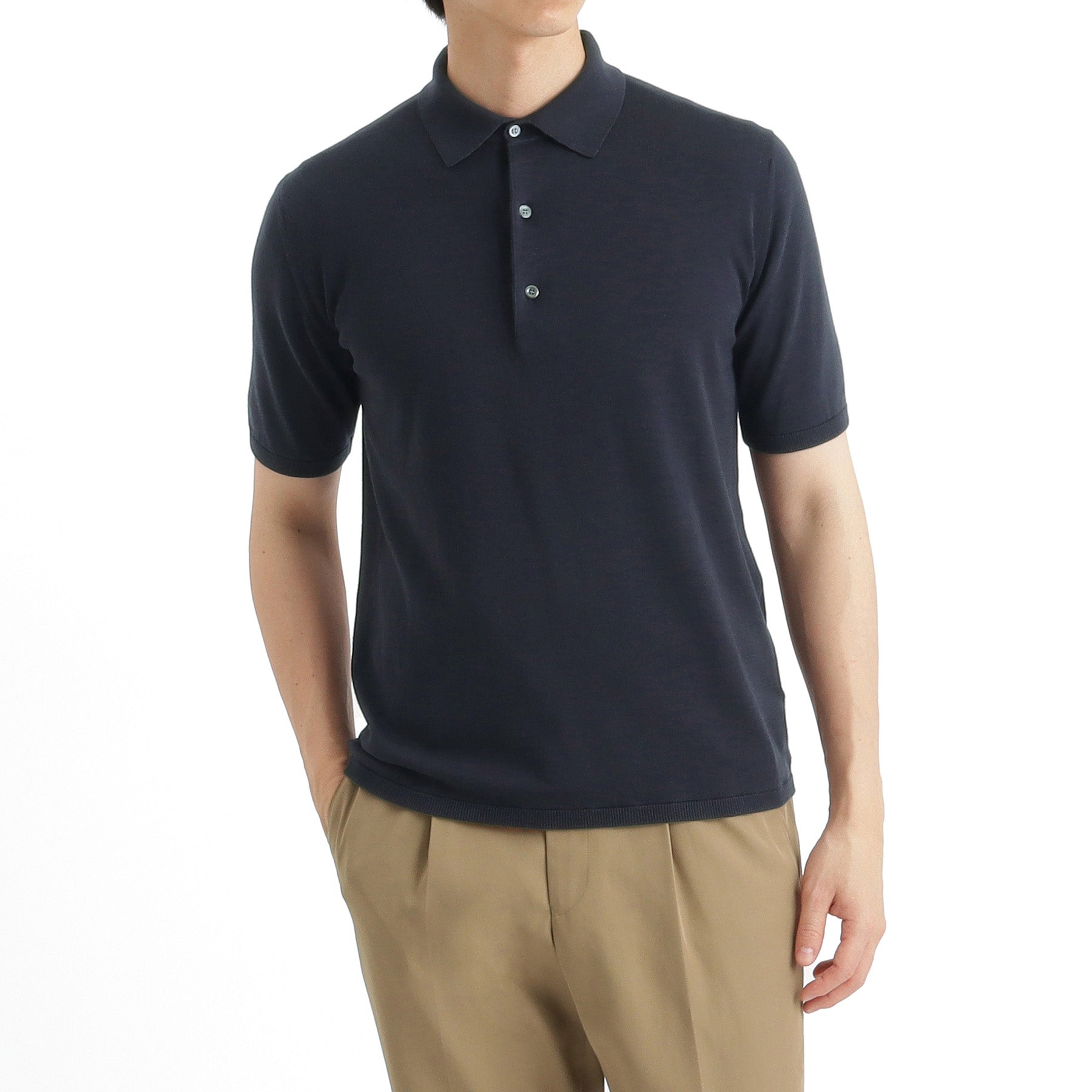 テーラー監修のポロシャツの型紙をベースに作製されたスビンニットポロシャツ。