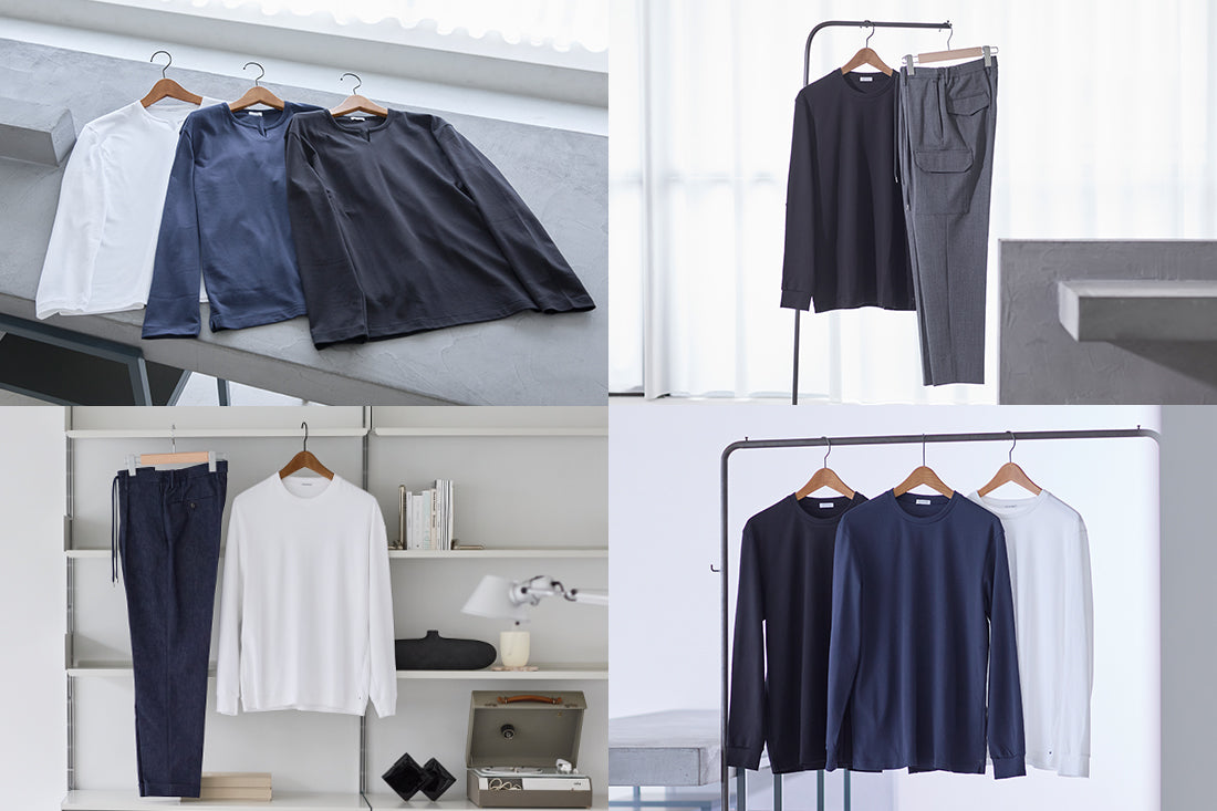 最高峰とも称されるスビンプラチナム原料のスムース生地を使ったロングスリーブのモックネックTシャツ。首のラインが綺麗に見える衿の高さや締まりすぎない広さなどのこだわりをそのまま継承し、ジャケットやカーディガンなどのインナーに最適な1着。