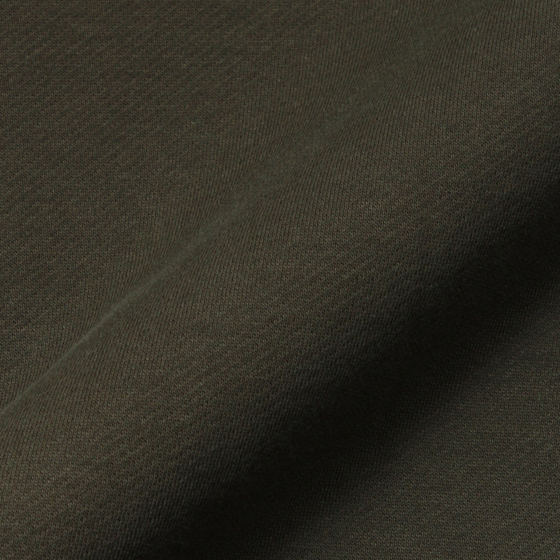希少原料スビンプラチナムを表面、裏面ともに使用して完成した裏毛です。ハイゲージと呼ばれる32ゲージ裏毛編み機を採用、ソフトで膨らみが有り、かつ上品な艶、光沢の有る表情を生み出しています。また裏面を尾州産地で起毛することで、より生地の中に空気が含まれ柔らかさが増し、最高の肌触りを生み出しています。生地厚が増し、保温性を高める効果も発揮しています。