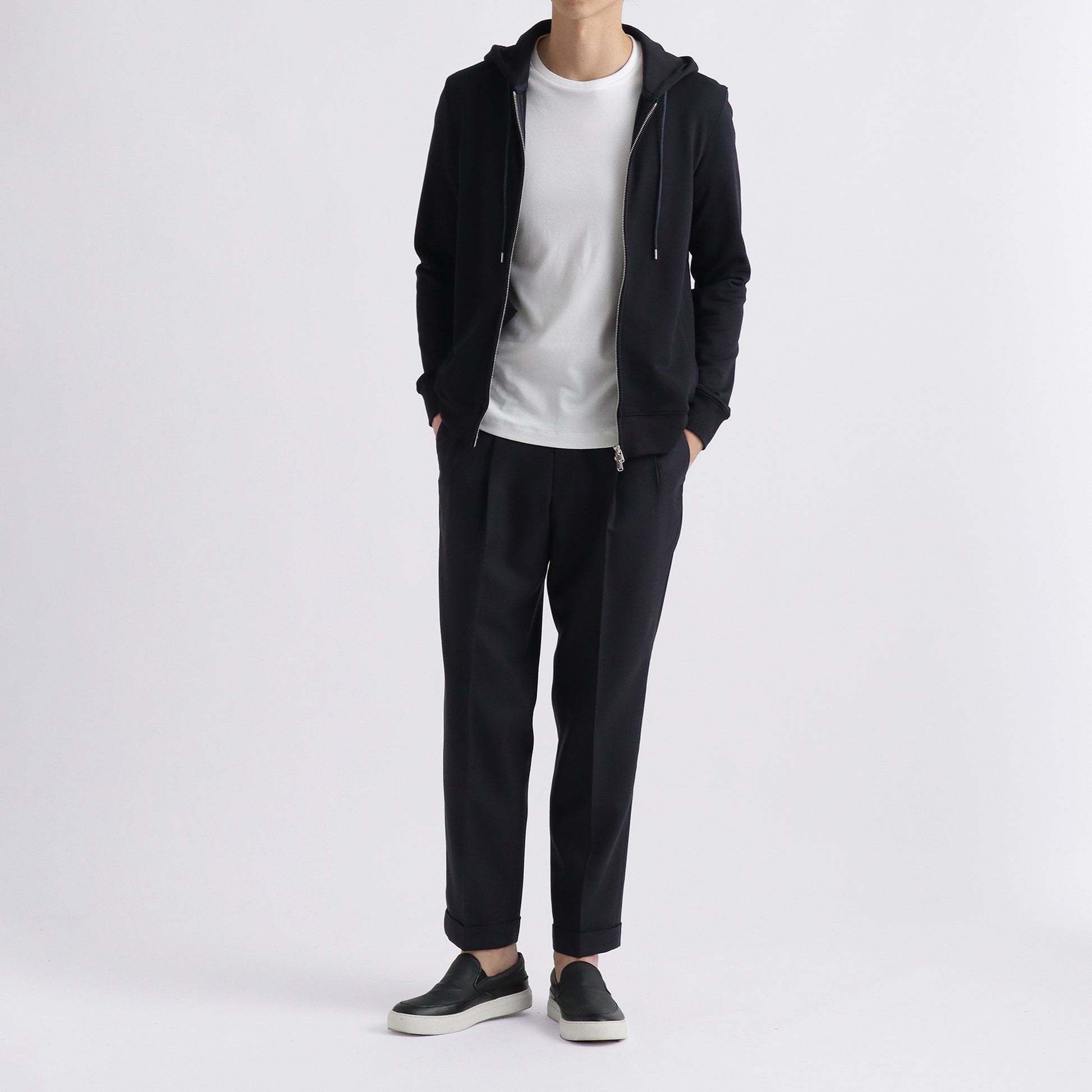 開発に5年近い期間を経て完成したスビンプラチナム裏毛。その裏毛を使ったコレクションに新たにジップアップタイプのフーディーが登場しました。
